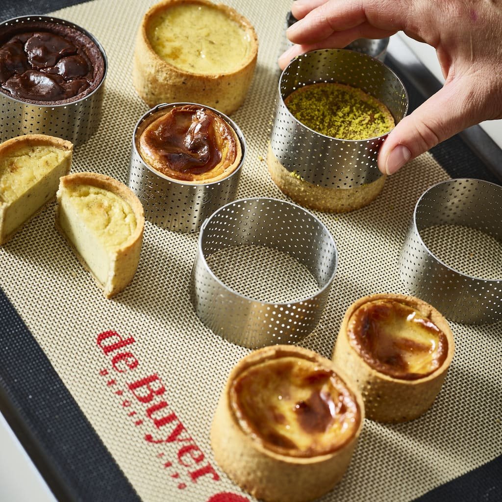 - o aro perfurado para tarteletes em aço inoxidável com um diâmetro de 24 cm é a escolha ideal para cozer bolos, tartes, quiches e bolos de sobremesa