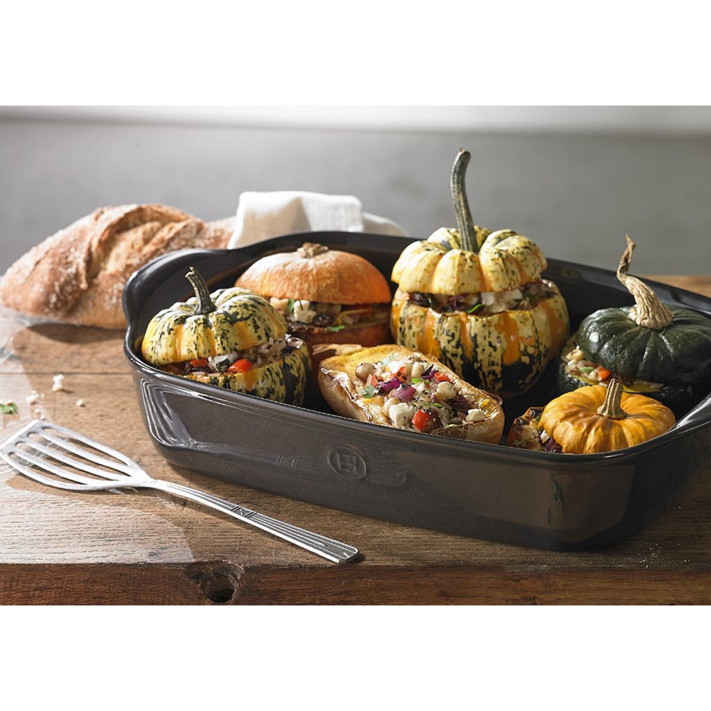 As taças de cerâmica para cozer Emile Henry não são apenas ajudantes fiáveis na cozinha, mas graças ao seu design elegante serão certamente o centro das atenções à mesa. O design melhorado e mais elegante das pegas, que transitam suavemente a partir do bordo dos recipientes, permite o empilhamento. Além disso, todos apreciarão a facilidade de manuseamento. As loiças com cores bonitas inspiradas em França e nas últimas tendências podem ser livremente combinadas entre si para criar novas combinações na cozinha e à mesa. Escolha entre vários tamanhos, adaptados a lasanha, moussaka, batatas fritas ou pães doces. A cerâmica High Resistance® garante que os alimentos permanecem quentes durante muito tempo depois de saírem do forno, para que possa desfrutar da sua refeição durante mais algum tempo.