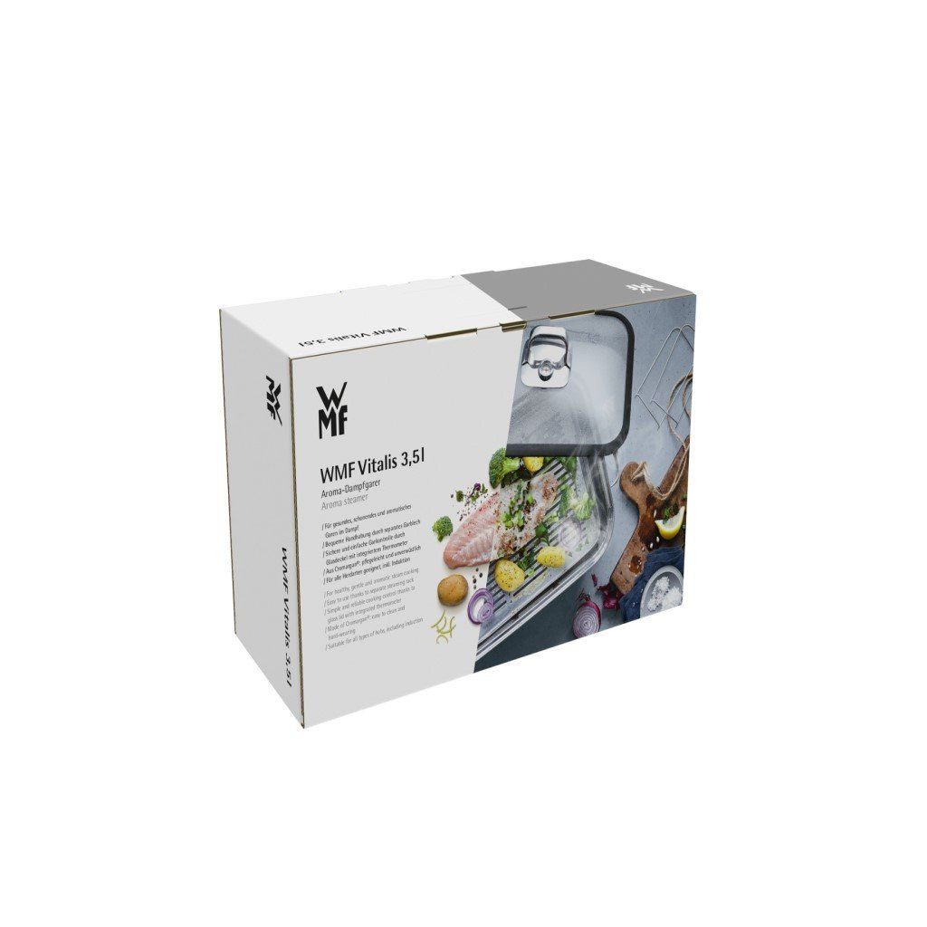 Com a assadeira WMF Vitalis pode cozer os seus alimentos a vapor com suavidade. A cozedura a vapor é considerada o método de cozedura mais saudável em todo o mundo. O princípio é simples. Durante este processo, o alimento não se encontra na água e, por conseguinte, não excreta as substâncias nele contidas para a água. Isto permite-lhes reter vitaminas e minerais preciosos. A cozedura a vapor é adequada para preparar todos os pratos que não precisam de ser puxados e estaladiços. Os legumes permanecem tenros e firmes, as aves são suculentas e o peixe não se desfaz. Nada seca ou queima com o vapor. Os alimentos conservam o seu sabor intenso e específico, pelo que é possível reduzir significativamente a salga. A excelente condução de calor através do vapor garante que os alimentos cozinhem uniformemente no interior. Para este método de cozedura, a WMF desenvolveu o sistema ideal de assadeiras Vitalis Aroma.