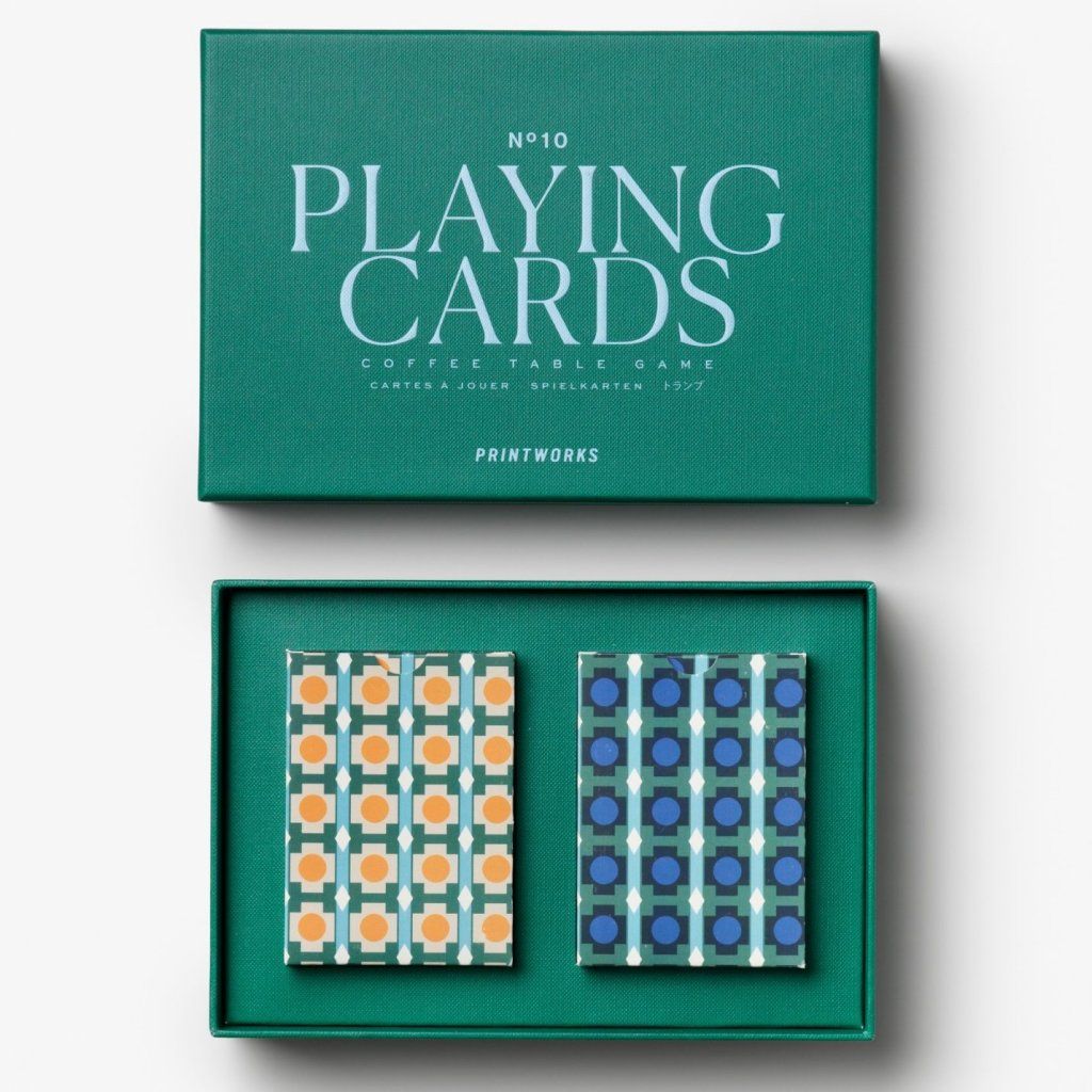 - dois baralhos de cartas num conjunto permitem opções de jogo mais vastas e uma diversão mais longa sem ter de baralhar as cartas com tanta frequência