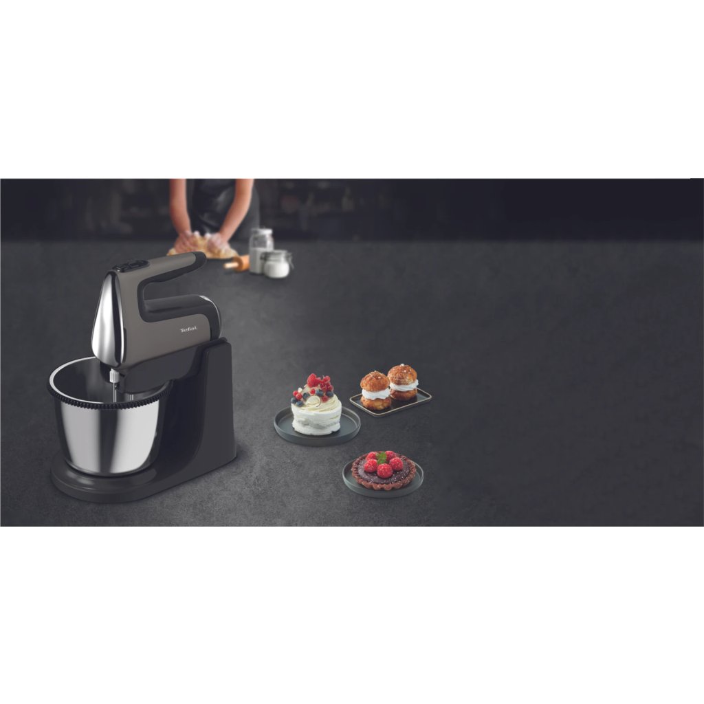 Batedeira com taça de apoio POWERMIX SILENCE HT654E38 prateada, Tefal