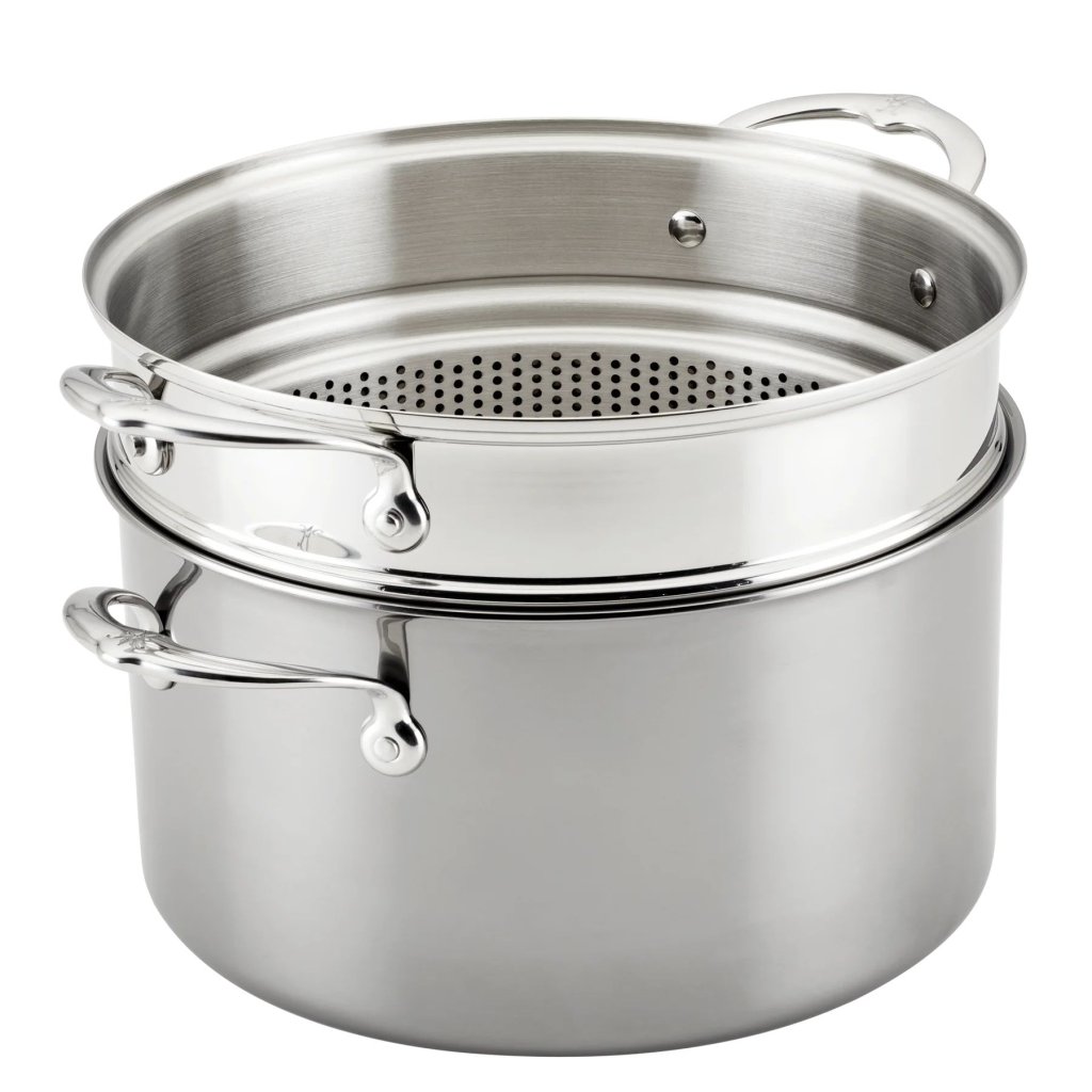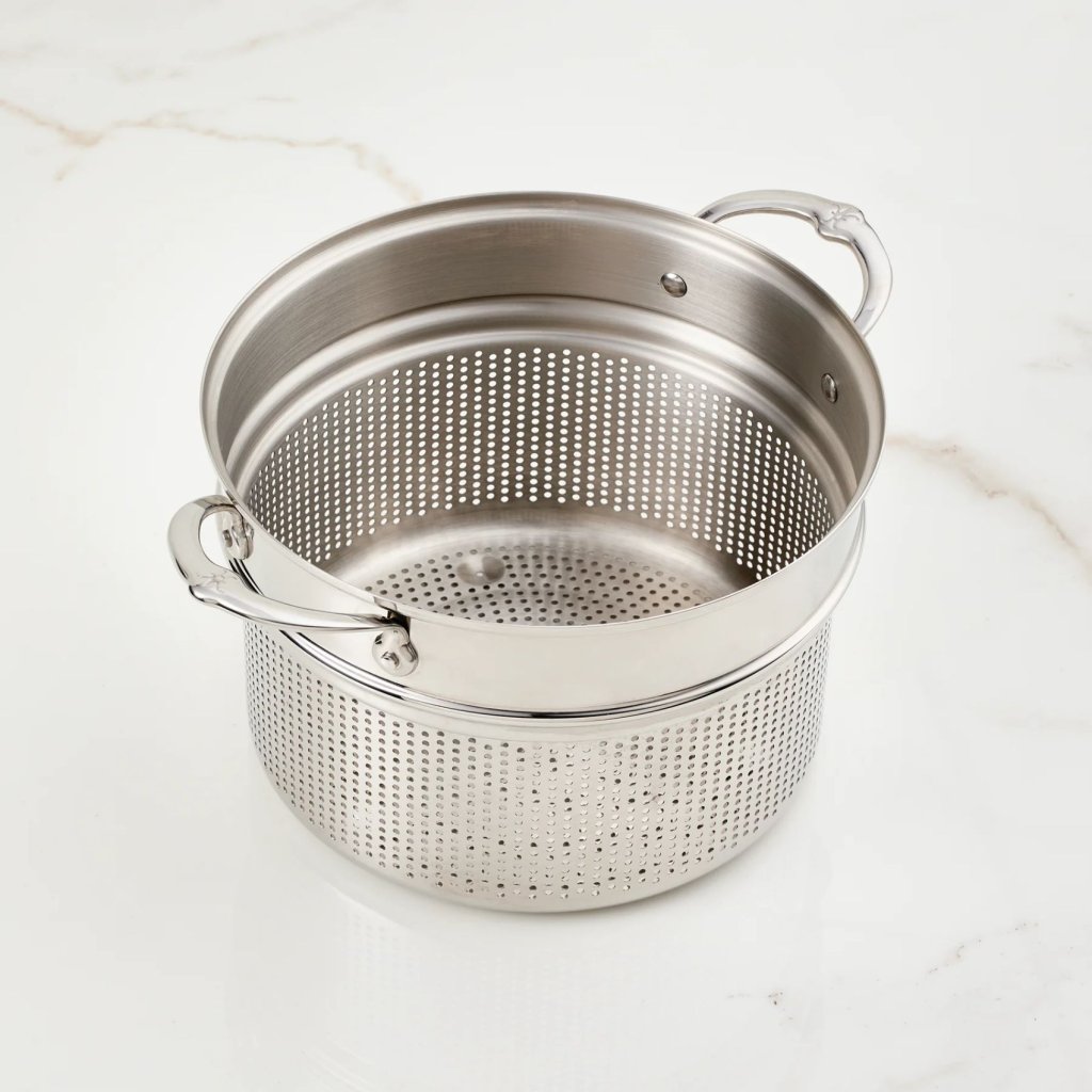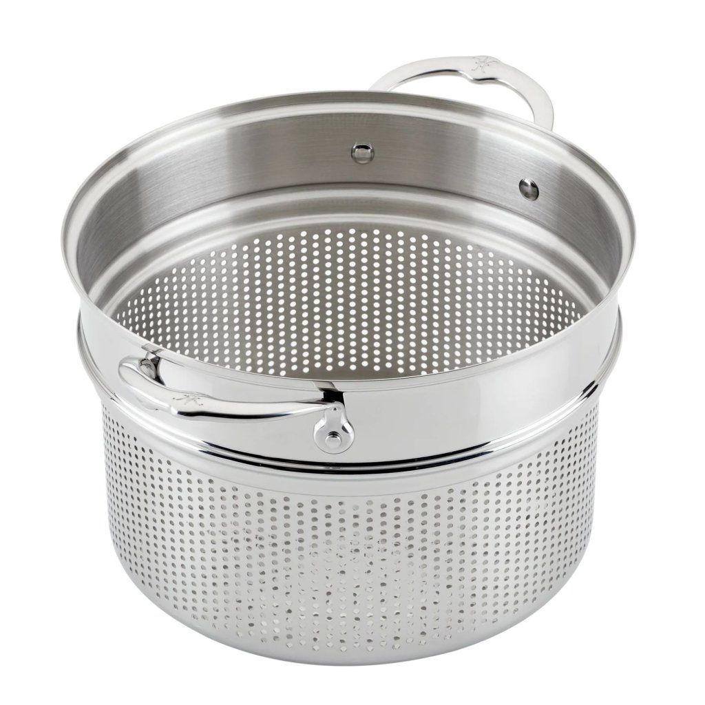 - Este acessório multifuncional transforma seu panela de cozimento Hestan com capacidade de 7,6 litros em um recipiente multifuncional que pode ser usado não apenas para cozinhar massa, mas também para refogar legumes ou preparar frutos do mar.