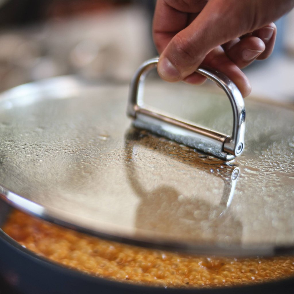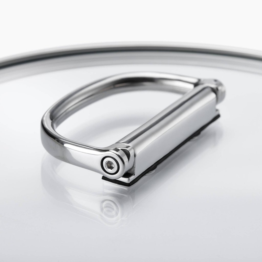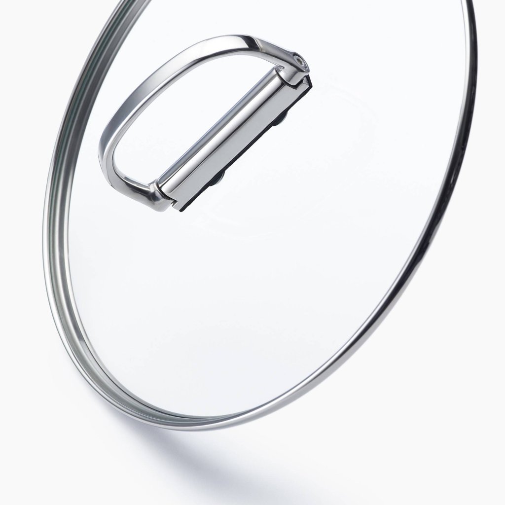 - Inclui um copo de vidro temperado tampa de vidro para panela com borda de aço inoxidável e uma alça dobrável para facilitar o armazenamento compacto.