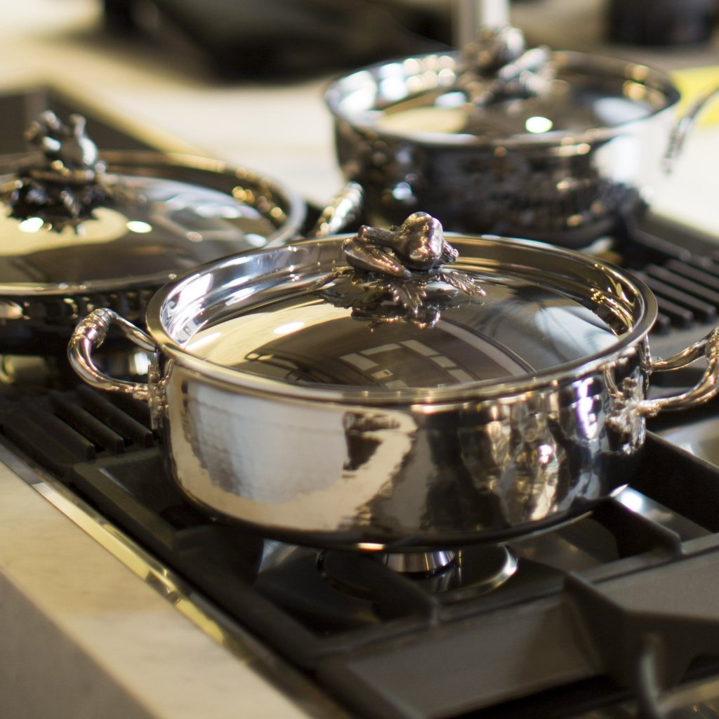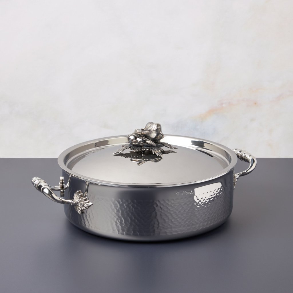 - caçarola baixa de luxo, em ferro forjado e aço inoxidável, com tampa, para os cozinheiros profissionais e amadores mais exigentes