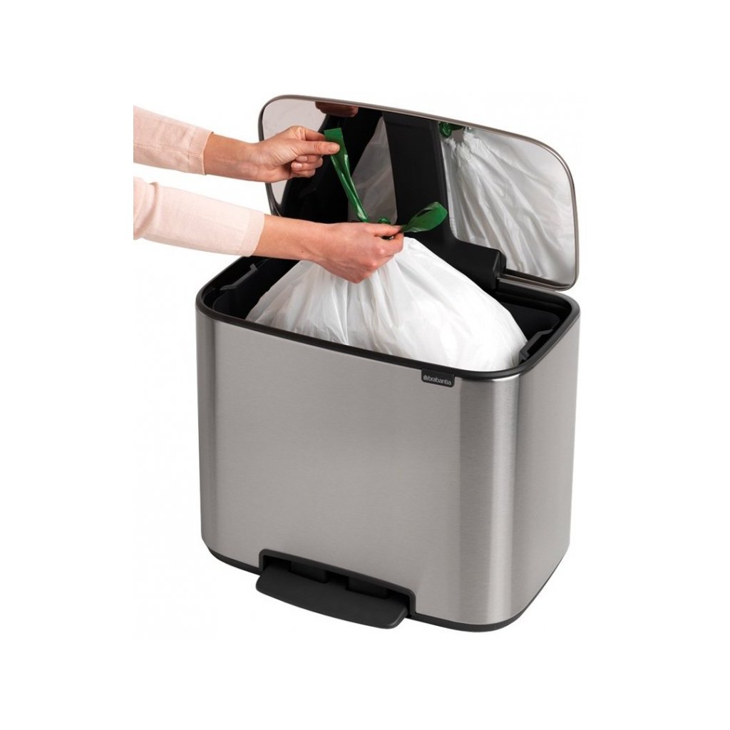 - Inclui sacos especiais adequados apenas para o contentor do lixo BO - a extremidade do saco fica escondida sob a tampa do contentor