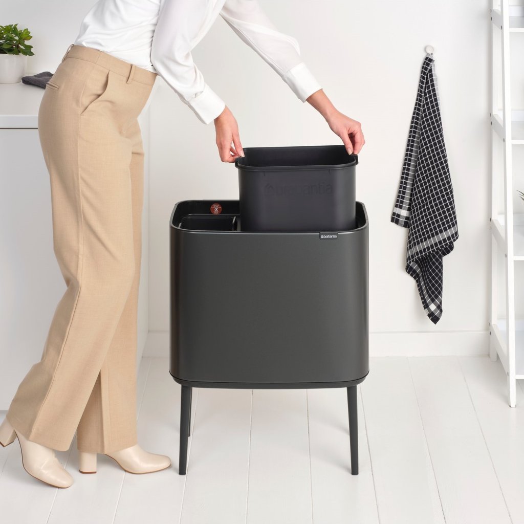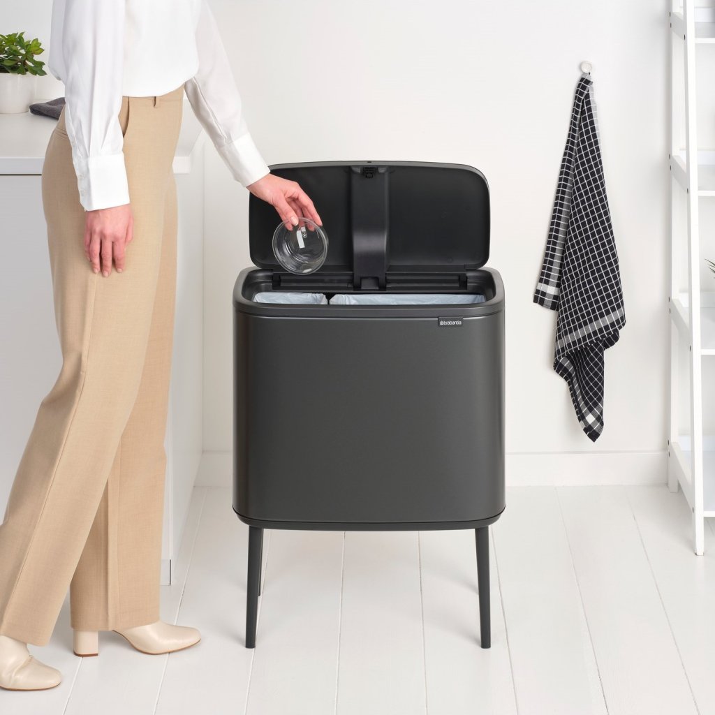 Caixote de lixo com sensor BO TOUCH BIN 11 + 23 l, cor cinzento-escuro, aço, Brabantia