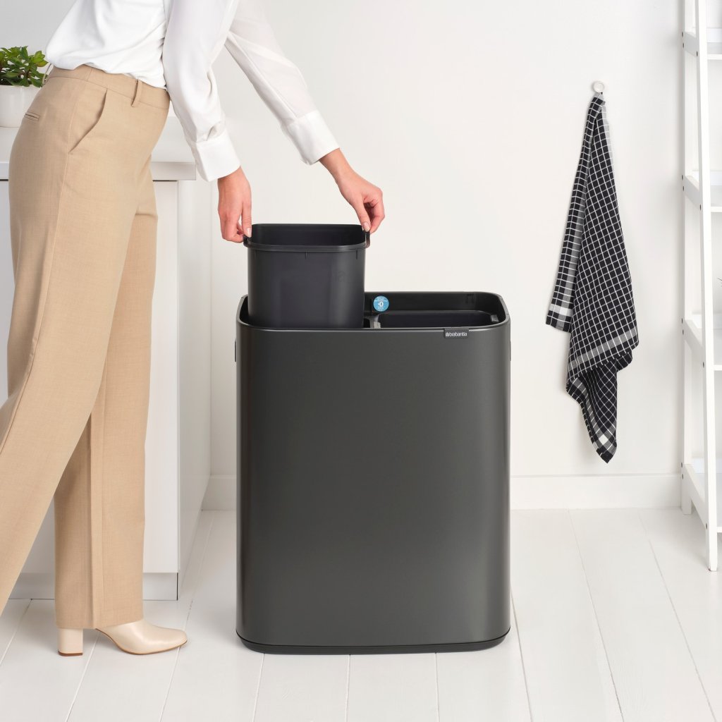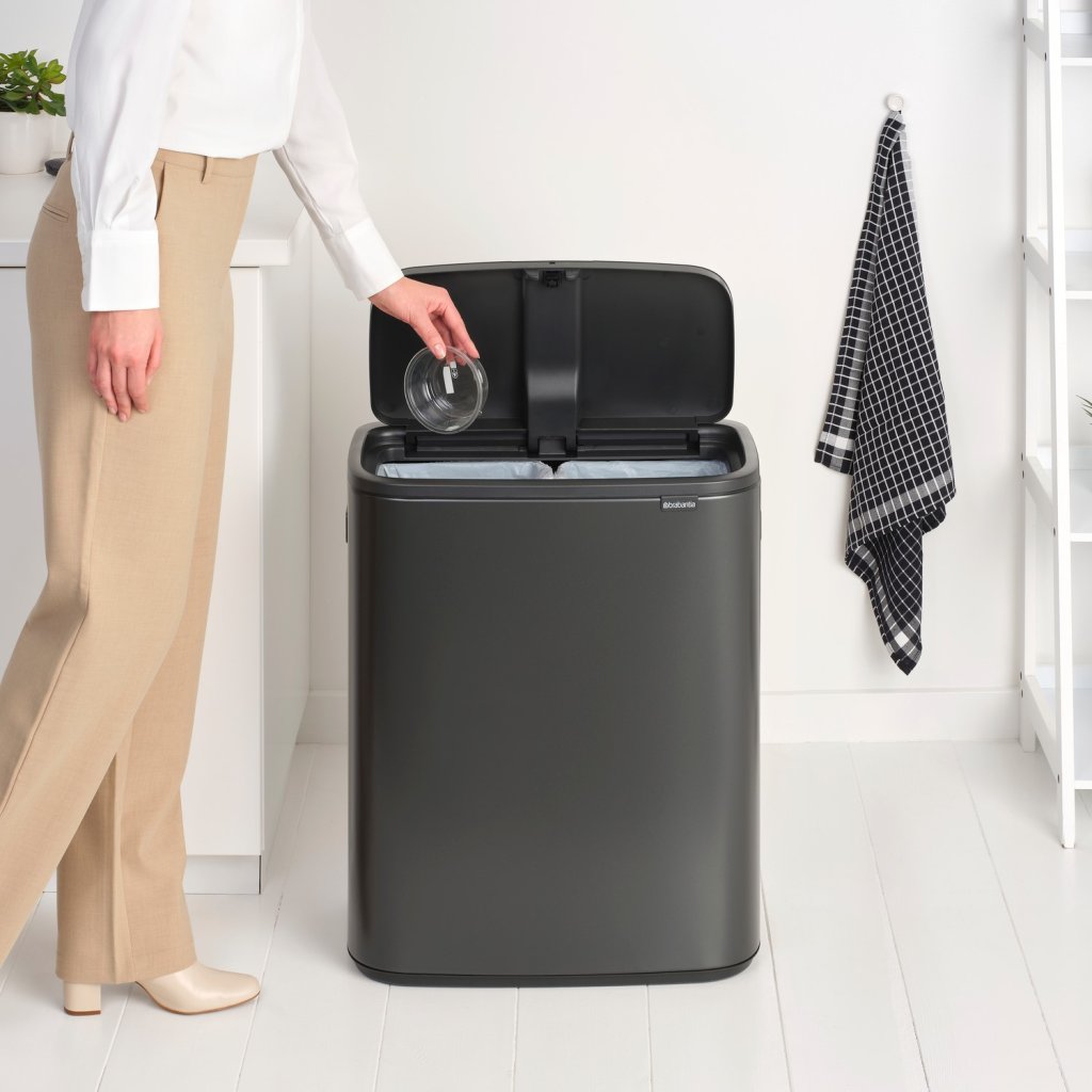 Caixote de lixo com sensor BO TOUCH BIN 2x 30 l, cor cinzento-escuro, aço, Brabantia