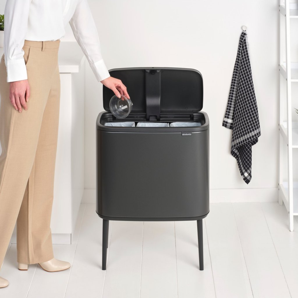 Caixote de lixo com sensor BO TOUCH BIN 3x 11 l, cor cinzento-escuro, aço, Brabantia