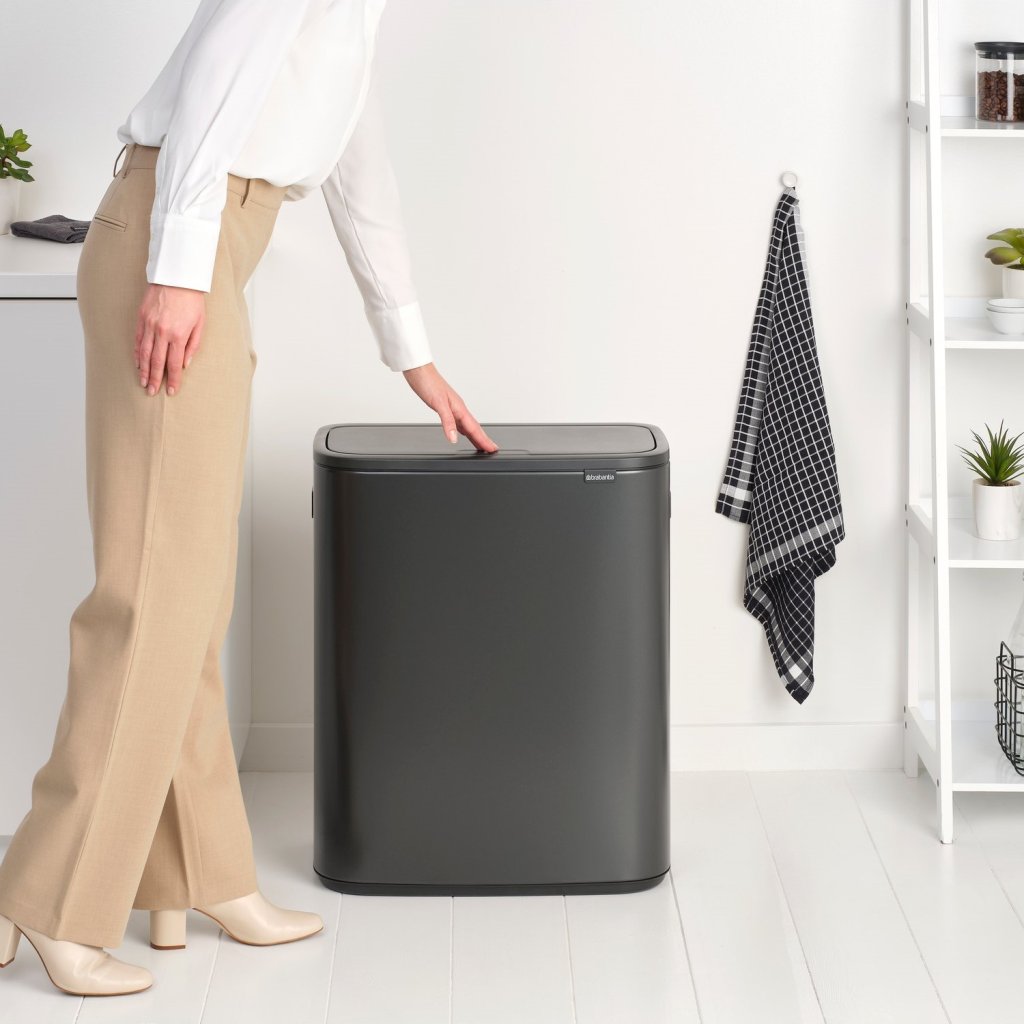 Caixote de lixo com sensor BO TOUCH BIN 60 l, cor cinzento-escuro, aço, Brabantia