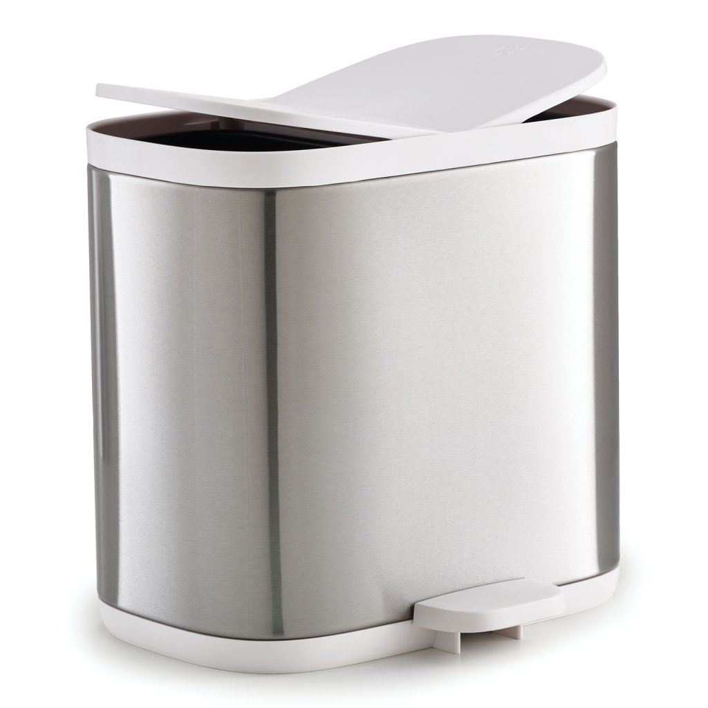 A reciclagem é muitas vezes esquecida na casa de banho. Foi por isso que o Joseph Joseph decidiu resolver o problema. O caixote do lixo Split está equipado com dois contentores e abre-se com um pedal. A capacidade total do cesto principal é de 6 litros e a concha é feita de aço inoxidável.