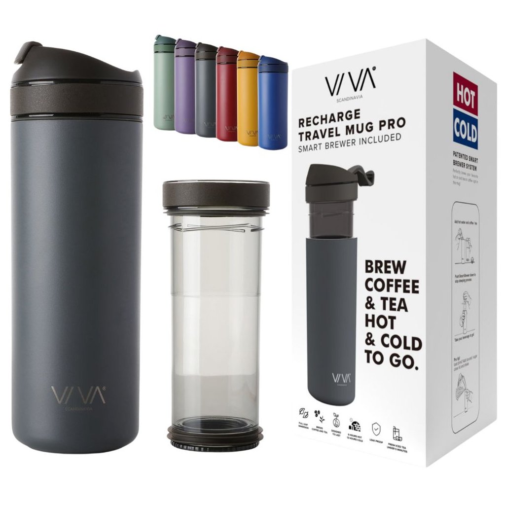 Caneca de viagem RECHARGE ANYTIME 460 ml, com infusor de chá, cinza, Viva Scandinavia
