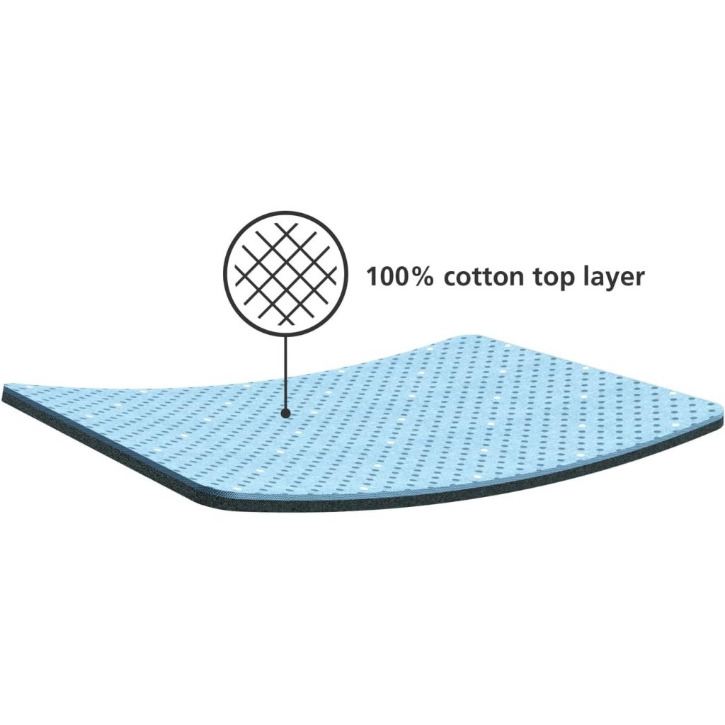 - material: 100% algodão (lado superior), 100% poliéster (lado inferior), silicone