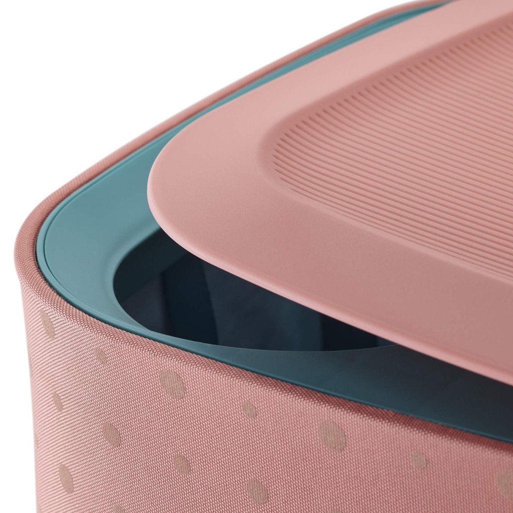 - A tampa cobre a roupa suja e ajuda a manter a casa visualmente arrumada e organizada.