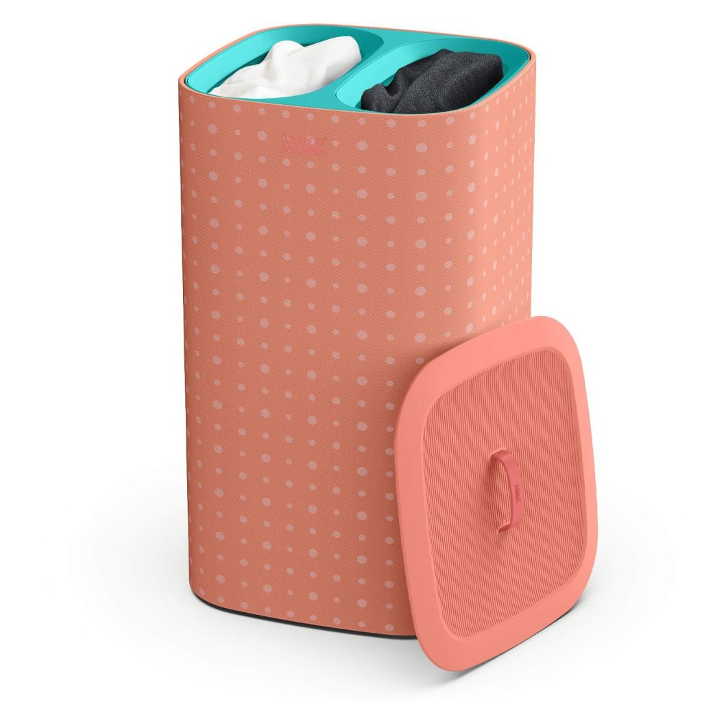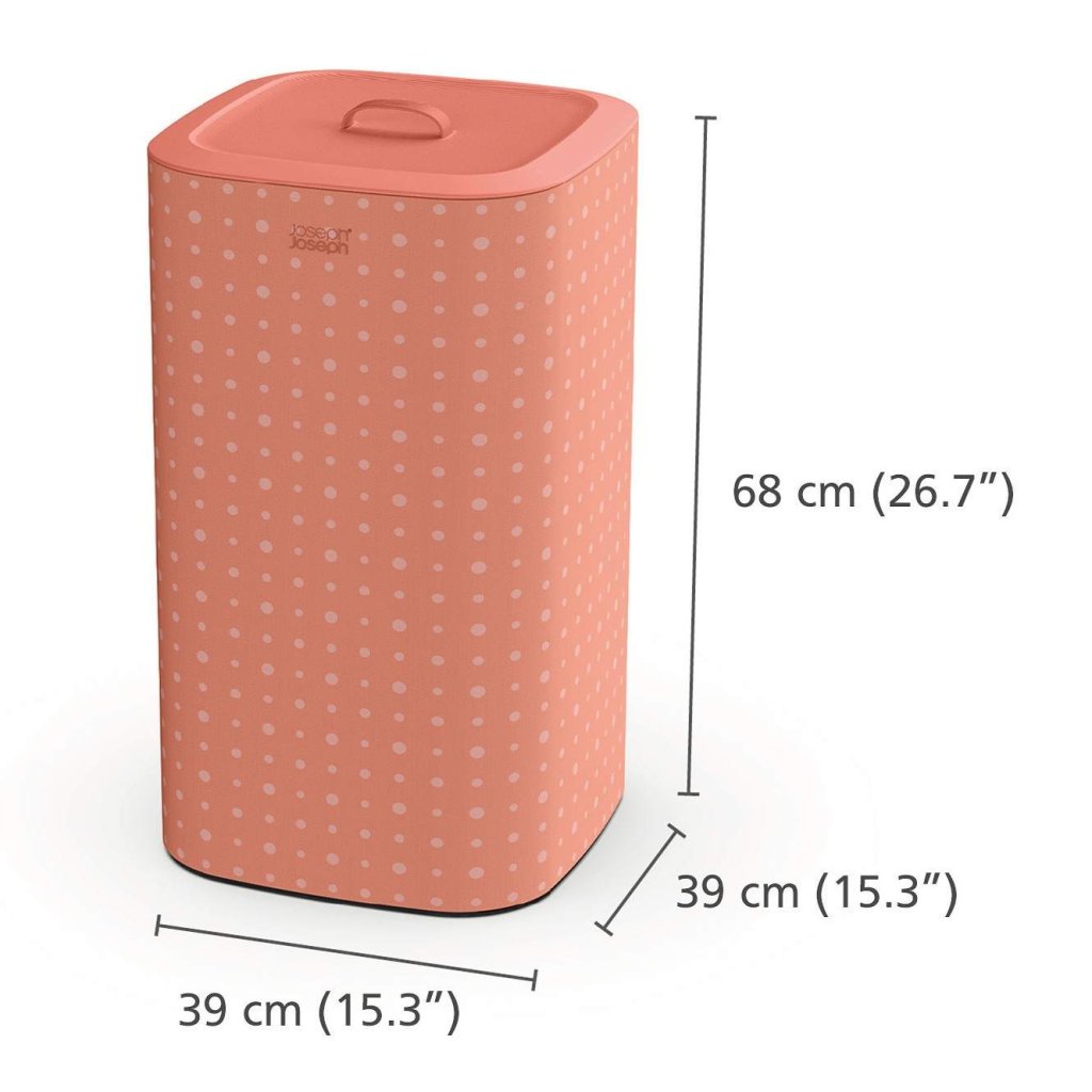 - O cesto Cesto de roupa suja Joseph Joseph TOTA POP com design coral é uma solução prática e elegante para organizar a roupa suja no quarto, banheiro ou lavanderia.