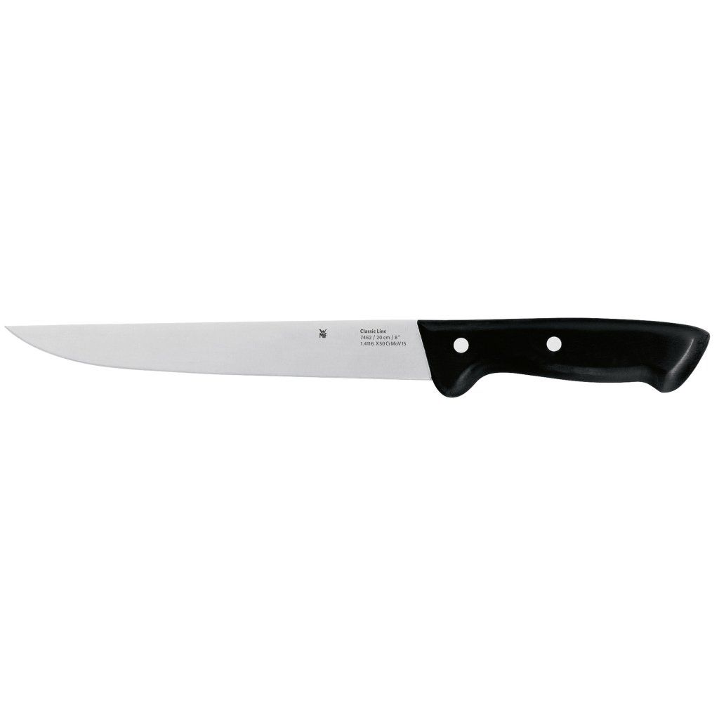 Classic Line é uma série de facas modernas com uma forma clássica. As lâminas das facas, feitas de aço especial para facas, são afiadas à mão. Isto garante uma afiação duradoura ao longo de todo o comprimento da faca. O cabo sem juntas é feito de plástico de alta qualidade e é totalmente higiénico. A série de facas ideal para cozinheiros principiantes!