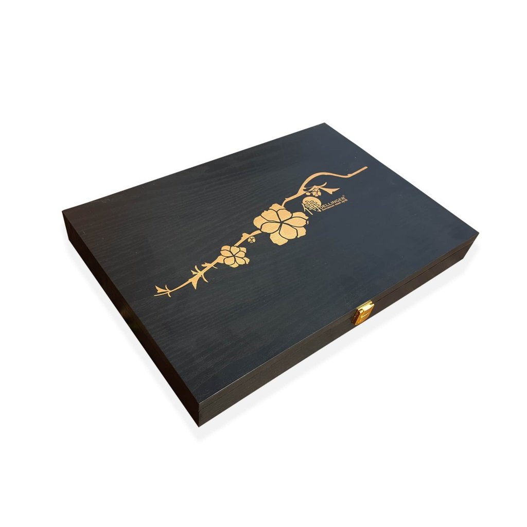 As lâminas destas facas são endurecidas em fornos de tratamento térmico a vácuo de alta precisão. Cada faca é polida à mão e, com uma dureza de cerca de 61 HRC, atinge uma afiação excecional a extrema. O conjunto de facas japonesas em aço damasco com um padrão impressionante que se assemelha às flores da famosa cerejeira japonesa é o presente ideal para quem está frequentemente na cozinha e para quem cortar é mais do que um mal necessário.