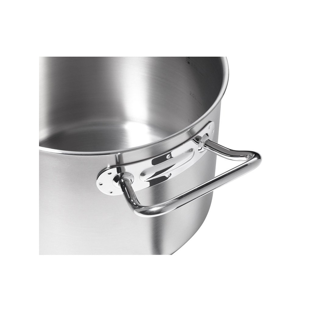 O aço inoxidável Tampa de vidro para panela se encaixa perfeitamente no panela de cozimento, tornando-o adequado para cozinhar com eficiência energética e pouca água. Os utensílios de cozinha também incluem uma prática balança integrada para medir líquidos. As pegas e as pegas em aço inoxidável mantêm-se frescas durante a cozedura e, graças à sua forma ergonómica prática, garantem um manuseamento seguro do utensílio de cozinha. Os pratos podem ser usados no forno, porém, luvas resistentes a cortes deve ser usado ao manusear pratos quentes. As panelas e frigideiras são fáceis de limpar e podem ser lavadas na máquina de lavar louça.