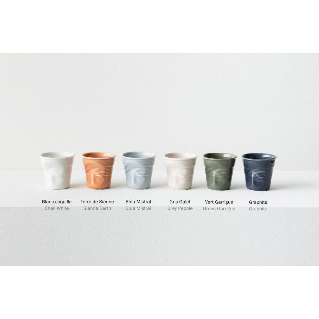 A Revol e a Ressource combinaram as suas competências e conhecimentos para criar seis novas cores para as chávenas Froissés - cores exclusivas, ricas e coloridas que se complementam entre si. Inspirado nas pequenas conchas de caracóis encontradas na natureza na Provença e nas conchas das praias mediterrânicas, Shell White é como uma expiração harmoniosa. Neutro e discreto, tem uma elegância que o torna adequado em todo o lado e se enquadra em todos os estilos decorativos. Fazendo lembrar um passeio na natureza, as cores de Revol e Ressource são diversas: tons de água, céu, plantas e pedras que funcionam em harmonia uns com os outros.
