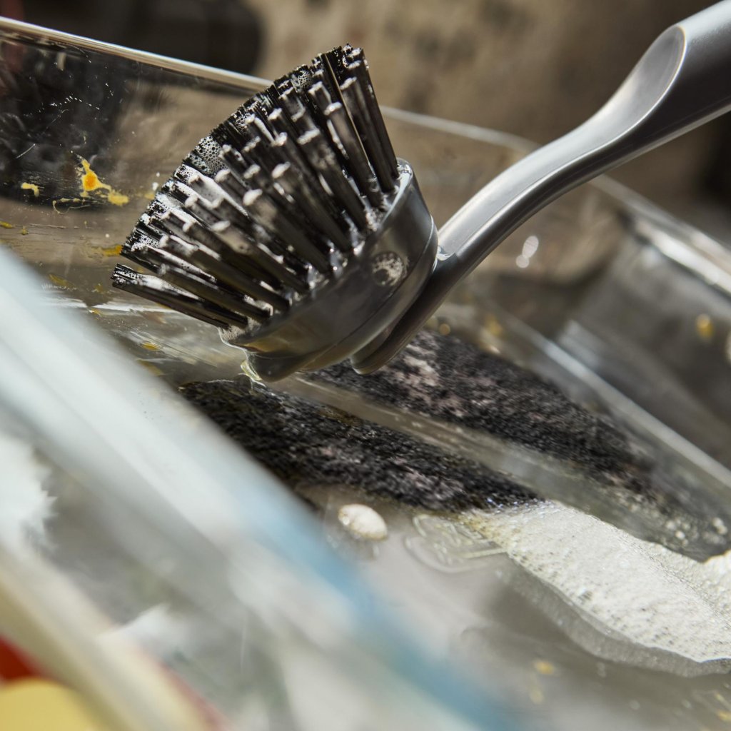 - As cerdas duráveis, concebidas para não manchar, mantêm o seu aspeto a longo prazo e, ao mesmo tempo, lidam com restos de comida secos sem esforço desnecessário.