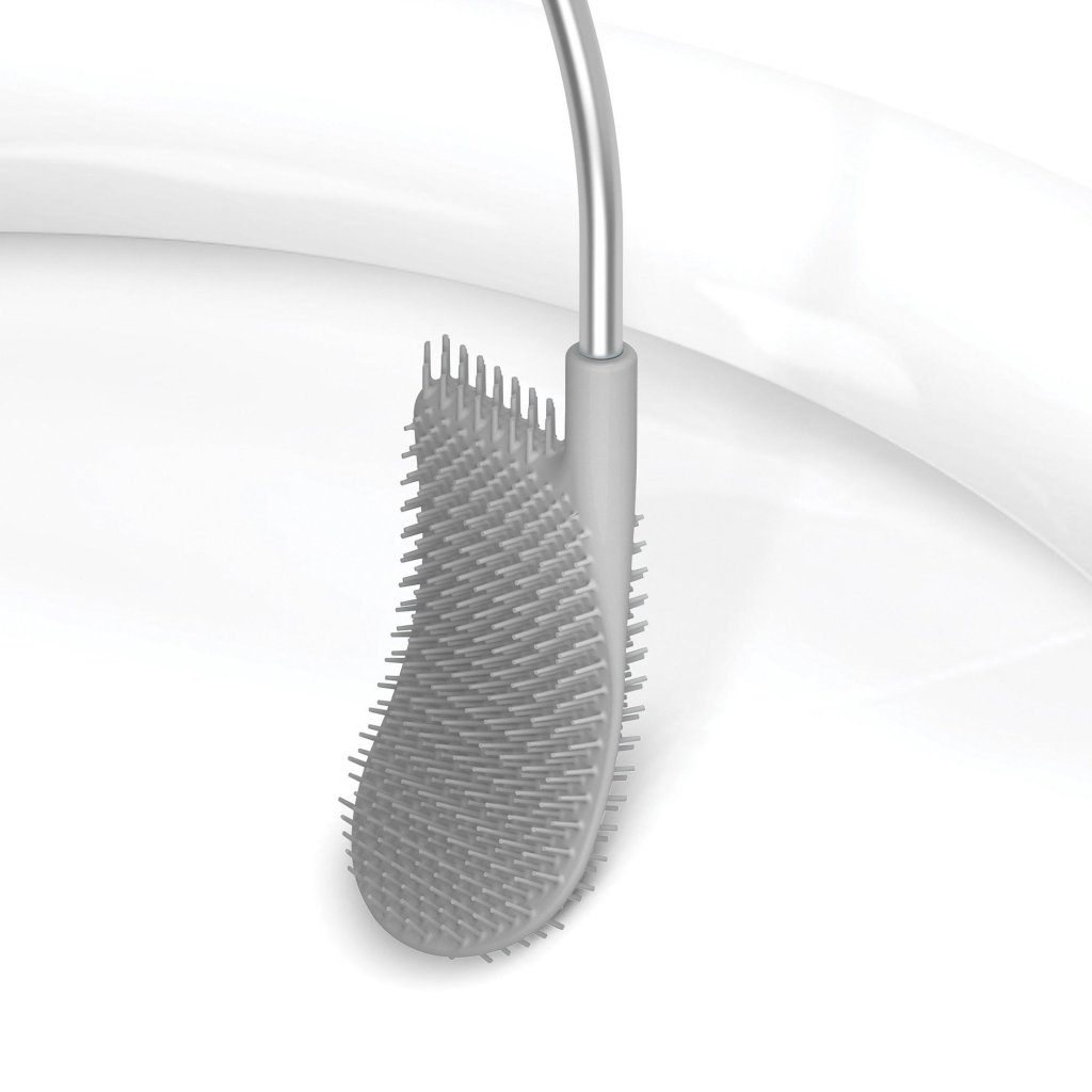 - A superfície lisa de silicone garante que a água escorra rapidamente de volta para a sanita, minimizando o risco de pingos ao recolocar a escova na base.