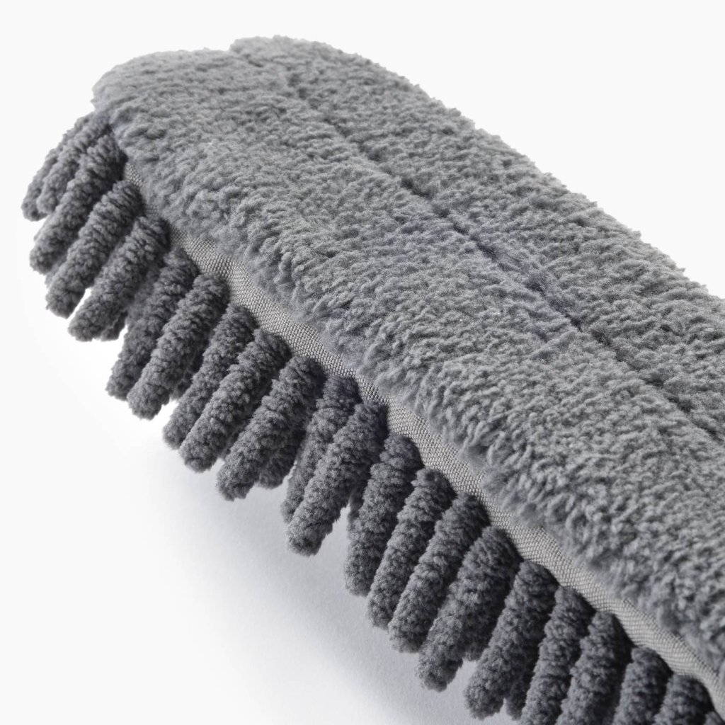 - O tecido denso tipo fio retém bem o pó em superfícies irregulares, como decorações, molduras, rodapés e materiais texturizados.