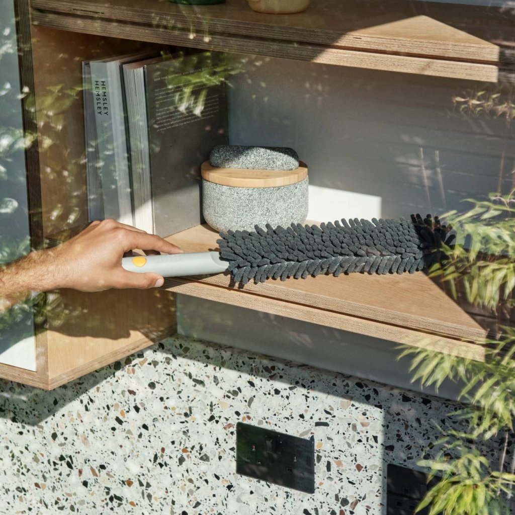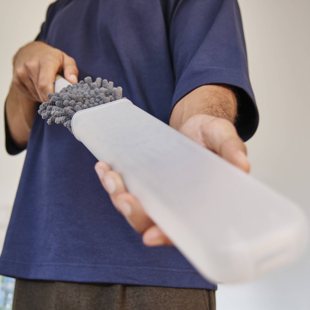 - O pano de pó Joseph Joseph CLEANTECH com capa protetora serve para limpar o pó de forma rápida e conveniente em casa.