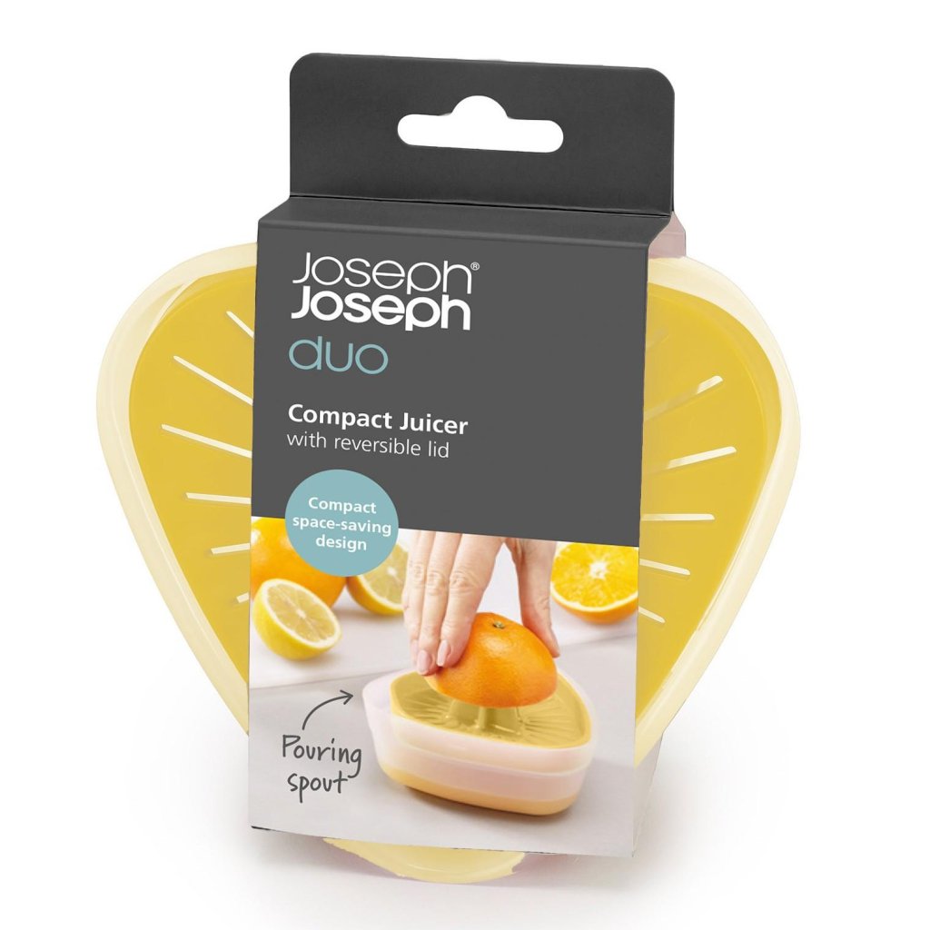- O Espremedor de frutas cítricas Joseph Joseph DUO é um espremedor prático com um recipiente que permite obter sumo fresco de limões, limas e laranjas de forma fácil e rápida.