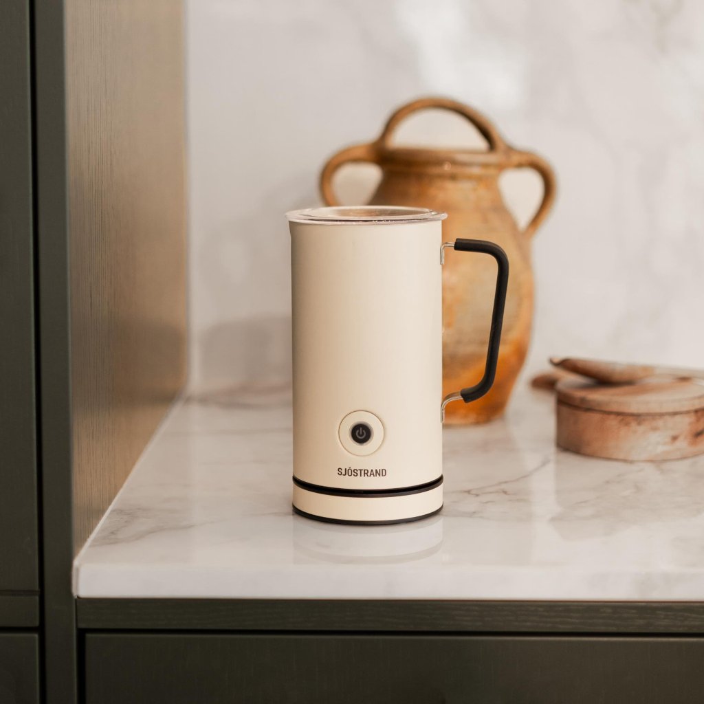 - O Espumador de leite Sjöstrand permite que você prepare uma espuma perfeitamente lisa e cremosa em apenas alguns segundos, seja para cappuccino, latte, macchiato ou chocolate quente.