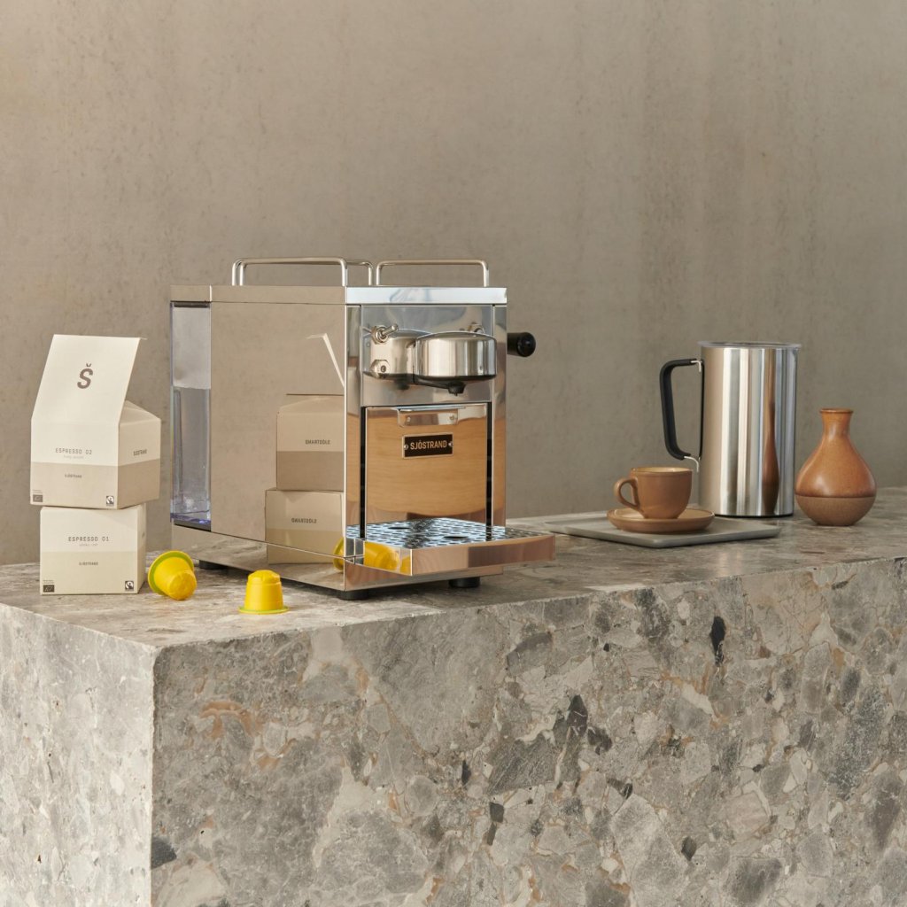 - O formato minimalista e o acabamento em aço inoxidável de alta qualidade realçam o estilo característico da marca Sjöstrand, que se baseia na combinação de estética e funcionalidade.