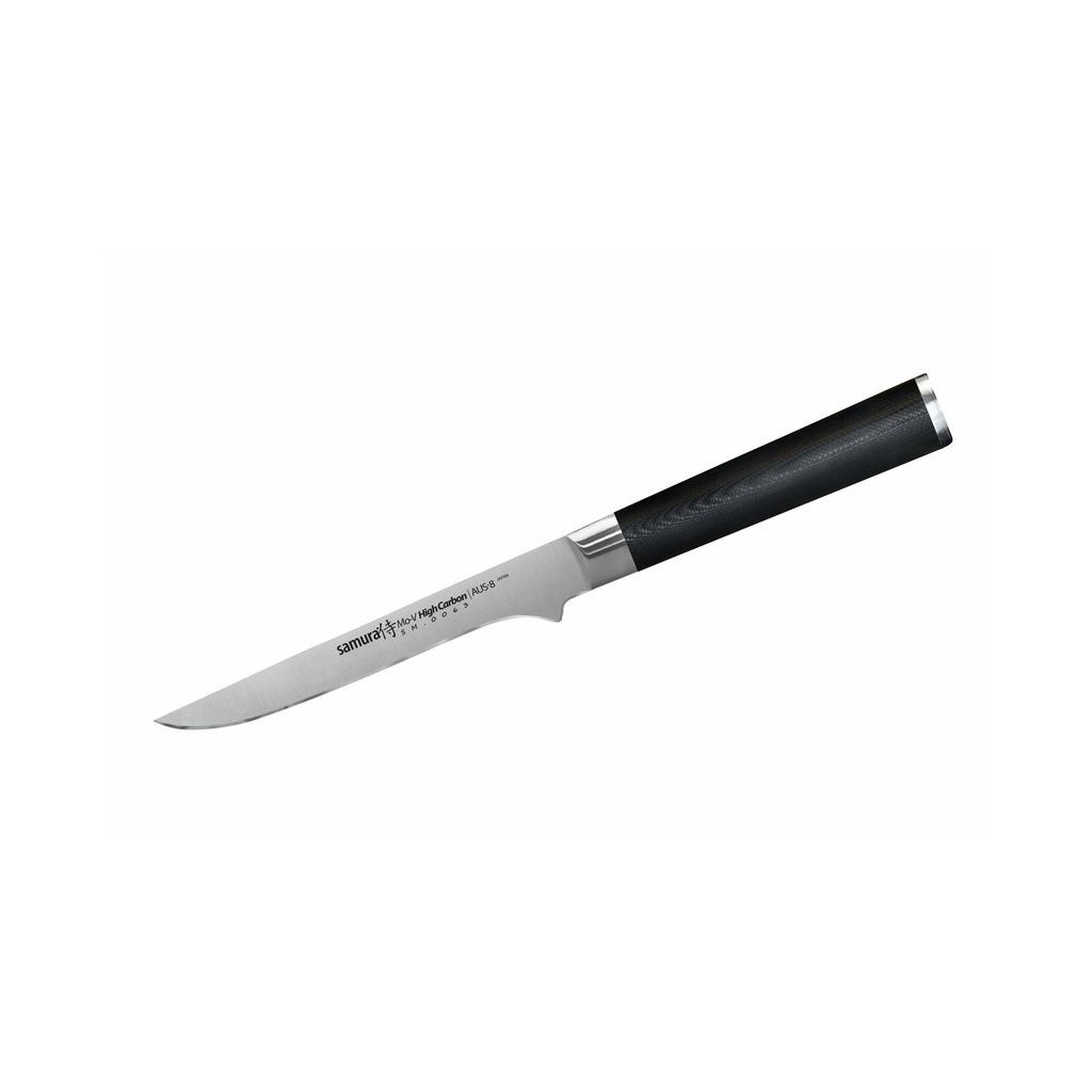 As facas Samura são fabricadas com o melhor aço japonês e sueco, endurecido a 58 - 61 HRC. As lâminas têm uma forma japonesa e um afunilamento suave a partir da ponta, o que lhes confere um desempenho de corte fantástico. As facas Samura são afiadas num ângulo de 17 graus. É mais do que as facas japonesas, mas menos do que as facas europeias. Para as pegas são utilizados os melhores materiais modernos: Micarta, G10, madeira estabilizada, plástico com um acabamento fino, Kraton e compósitos.