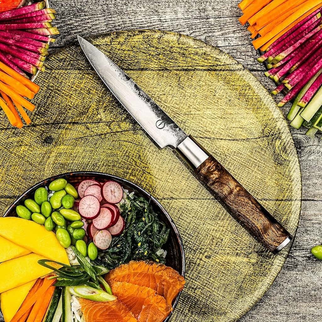 - a faca é o complemento perfeito para uma faca de chef ou santoku, uma vez que cobre a área das tarefas pequenas e precisas