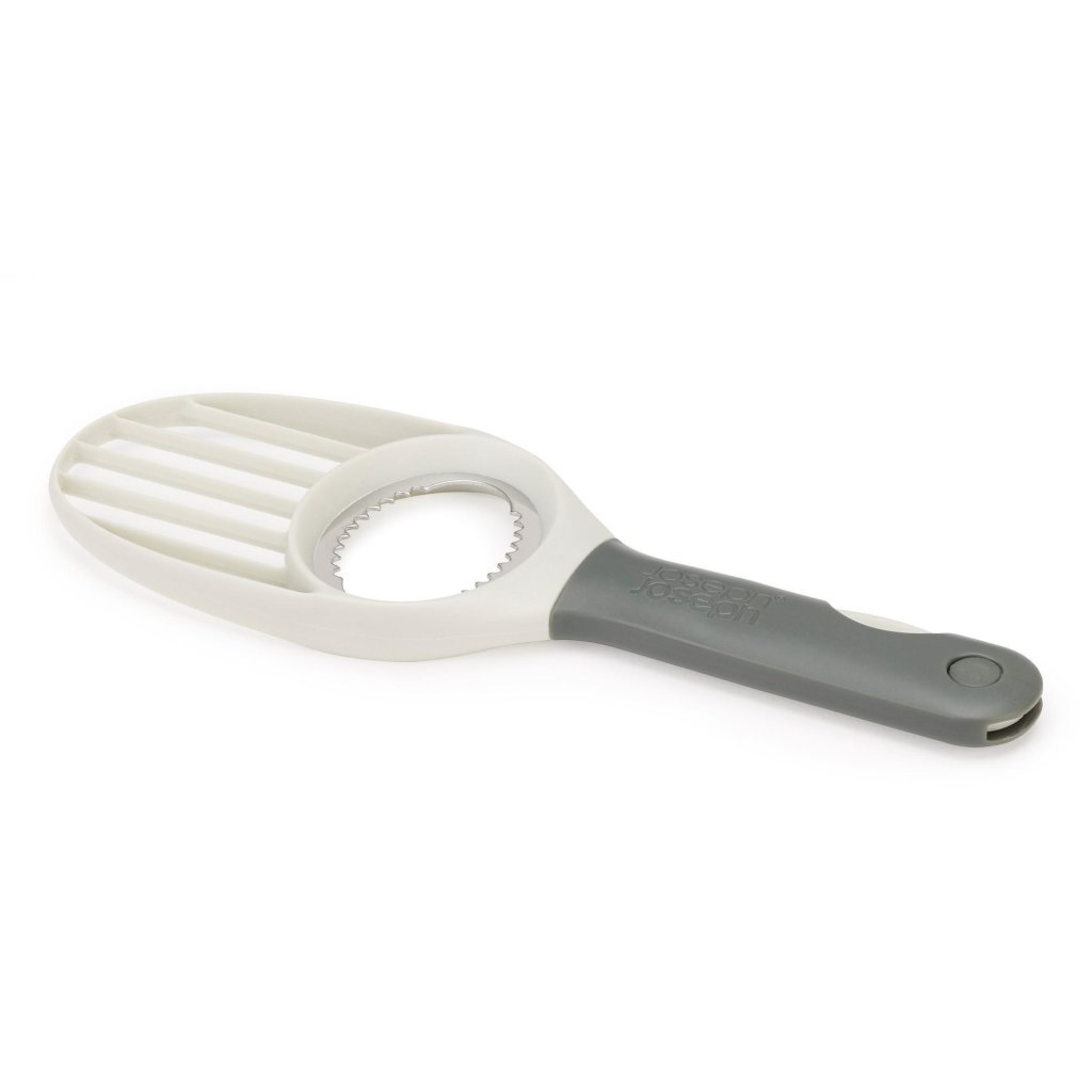 - Prático fatiador de abacate Joseph Joseph DUO permite descascar, remover o caroço, cortar e fatiar o abacate de forma conveniente e segura com uma única ferramenta compacta.