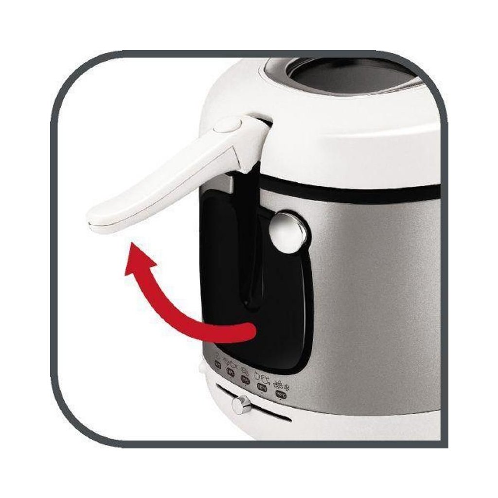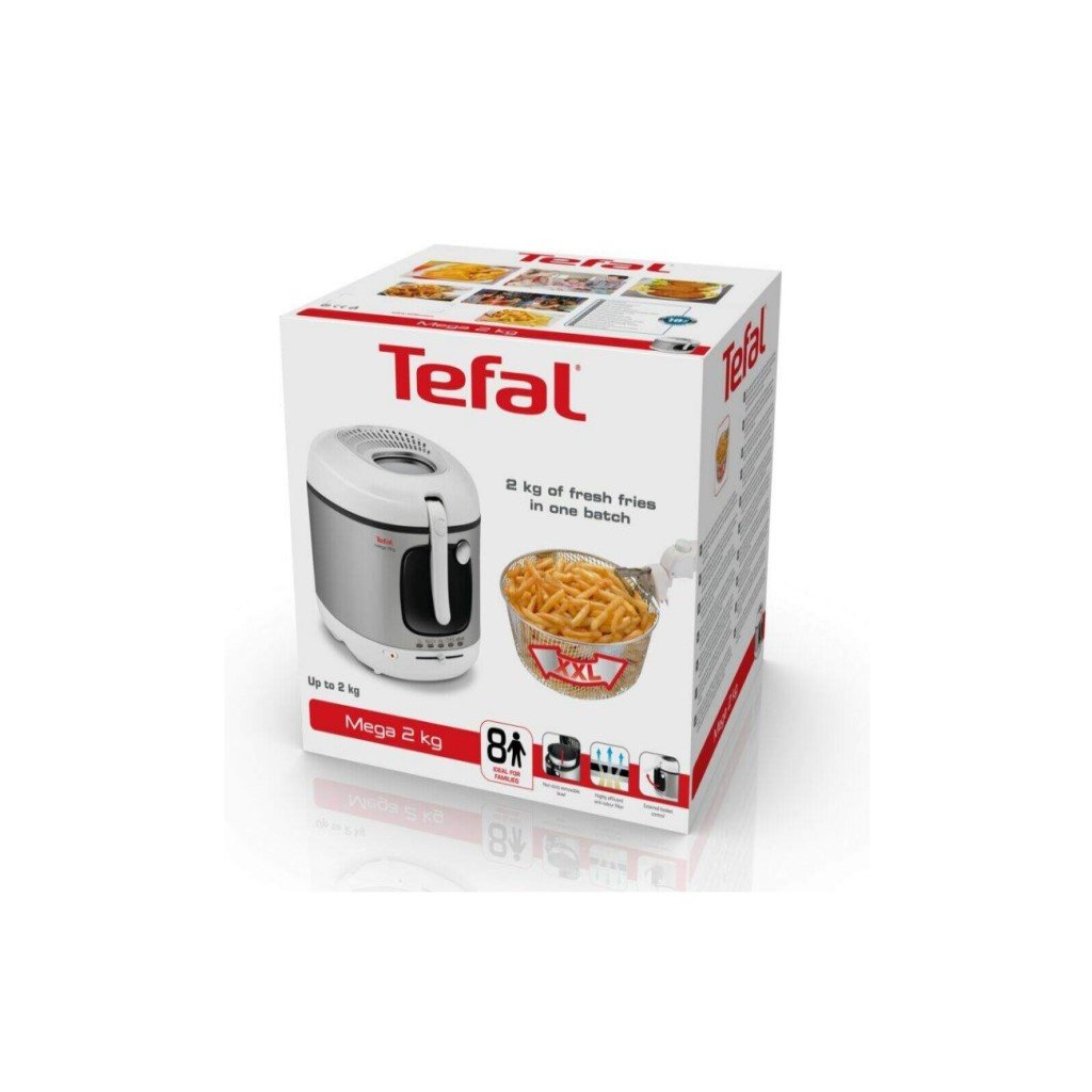 A fritadeira Tefal FR480015 ajudá-lo-á a preparar alimentos fritos saborosos e estaladiços. A capacidade da fritadeira é suficientemente grande para cozinhar até 2 kg de alimentos utilizando um máximo de 3,3 litros de óleo. A fritadeira é fácil de ligar e desligar com um botão on/off personalizado e tem um termóstato ajustável. O seu consumo de energia é de 2100 W. Não tem de se preocupar com queimaduras. As paredes da fritadeira são feitas de material resistente ao calor de alta qualidade e protegem-no de forma fiável contra queimaduras.