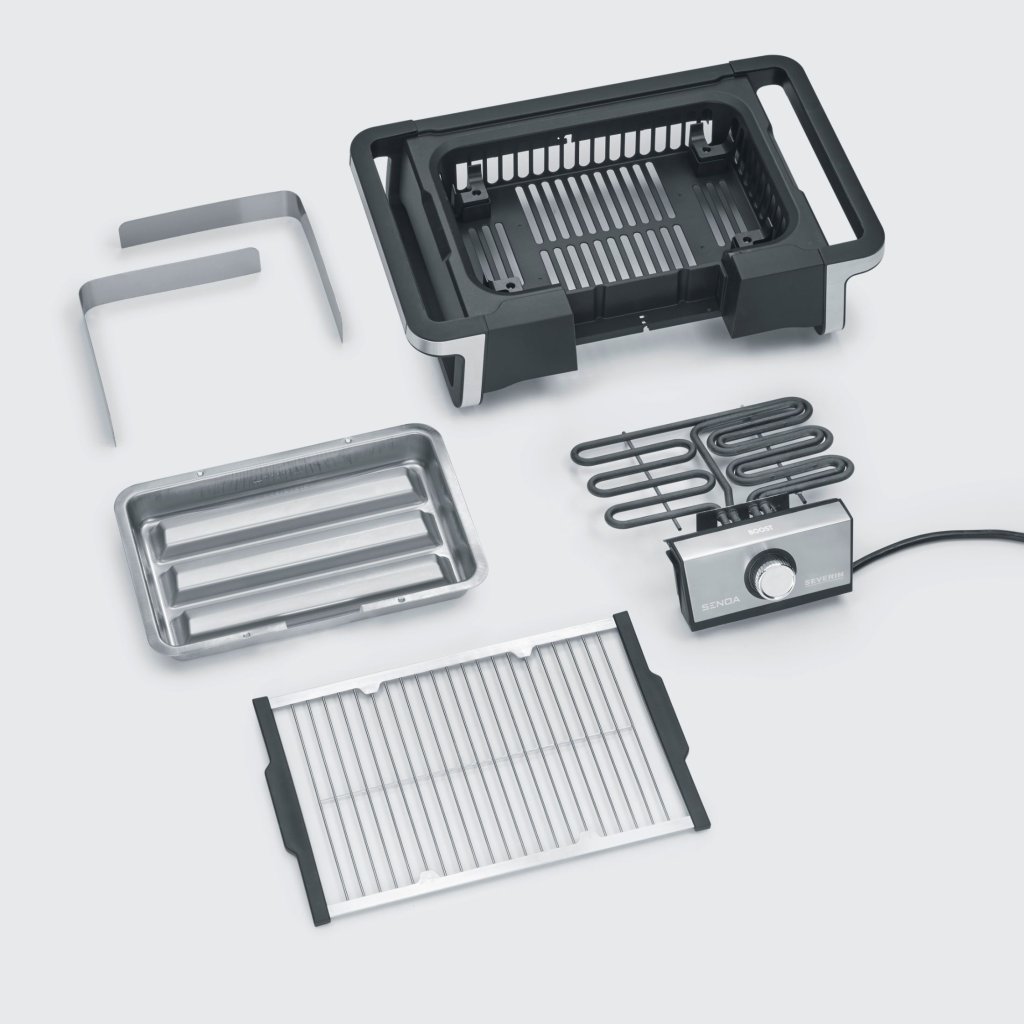 Grelhador de mesa com proteção contra o vento para uma utilização confortável no exterior e no interior. Severin A PG 8113 SENOA BOOST surpreende com um aquecimento extra rápido - de 0 °C a 500 °C em 10 minutos. O termóstato com um seletor rotativo grande e uma escala clara torna-o fácil de utilizar. A maior parte das peças amovíveis facilita a limpeza.