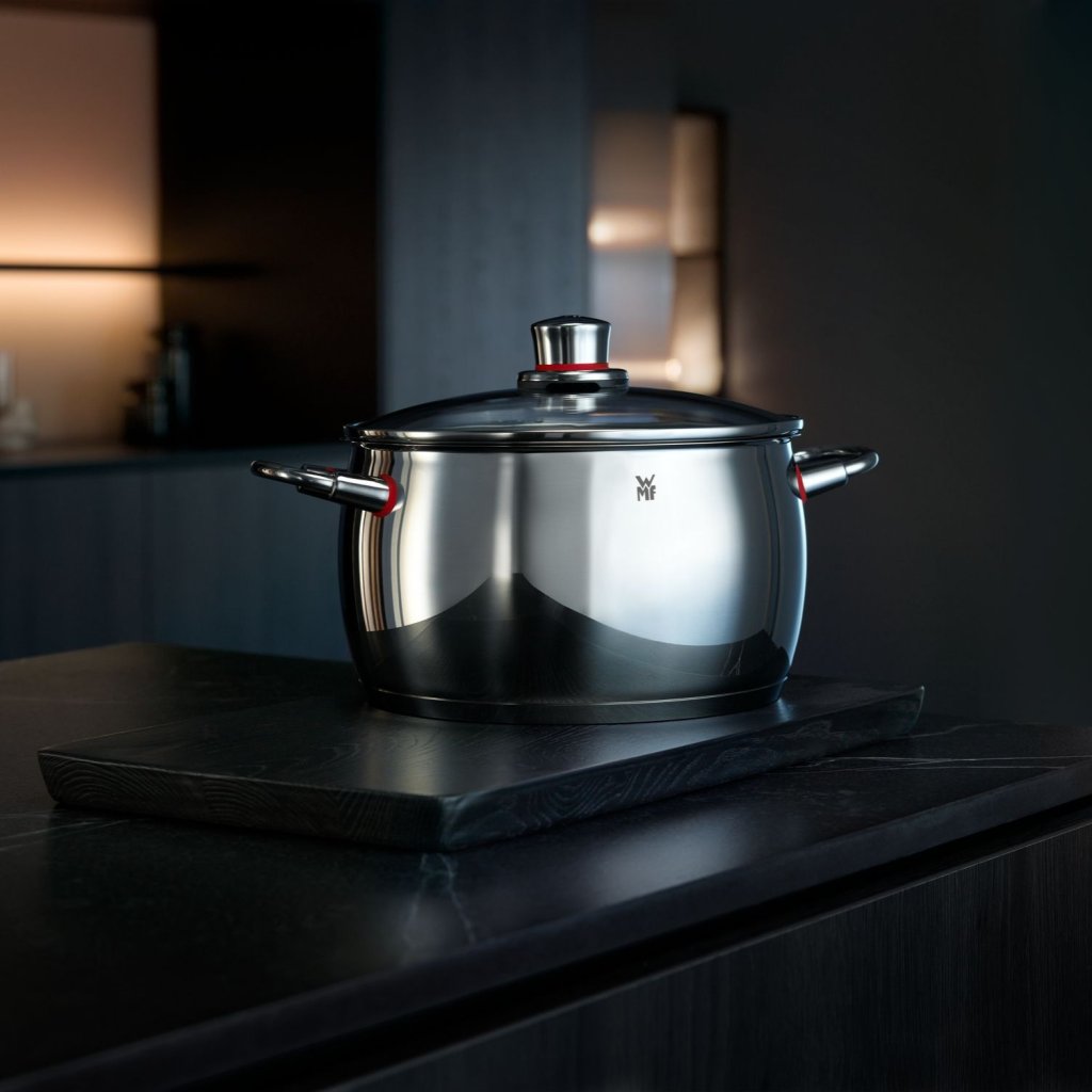 Německá značka WMF, patří již více než 160 let k předním výrobcům špičkových hrnců, pánví, nožů a dalších kuchyňských pomocníků. Ti denně pomáhají jak amatérským, tak profesionálním kuchařům k dokonalým gastronomickým výtvorům a jejich perfektní prezentaci. Společnost si dlouhodobě zakládá na neustálých inovacích a sledování nejnovějších trendů v oblasti kulinářství, které se snaží dále posouvat a rozvíjet. Výsledkem jsou produkty, vyznačující se prémiovou kvalitou, perfektní funkčností a vysokou odolností, zaručující dlouhou životnost. Skvělým příkladem je chytrý a oblíbený tlakový hrnec Sicomatic. Specialitou této značky jsou také ušlechtilá nerezová ocel Cromargan® a Cromargan protect®, technologie nožů Performance Cut či izolované úchyty hrnců Cool+. Na všechna tato vylepšení vlastní WMF patent, stejně jako na první plně automatický kávovar, kterého je tvůrcem.
