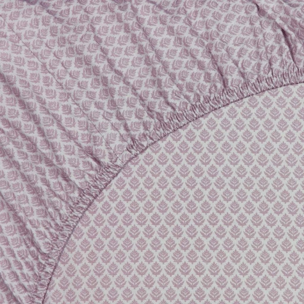 Lençol de casal com elástico MIL LEAVES 180 x 200 cm, cor roxo, algodão percal, Pip Studio