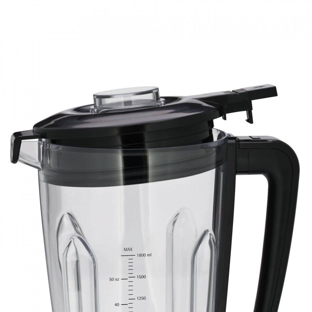 A varinha mágica de mesa de alta velocidade possui um interrutor de impulsos e 6 programas predefinidos para misturar, triturar, fazer batidos, cortar ingredientes, cortar gelo e limpar. Existem seis velocidades à escolha e a mistura em si é agradavelmente silenciosa, apesar da velocidade de 36 000 rpm. As ventosas na parte inferior do misturador garantem uma estabilidade adequada e o recipiente de mistura amovível com escala de medição está equipado com uma tampa com abertura integrada para reabastecer os ingredientes e um copo de medição transparente.