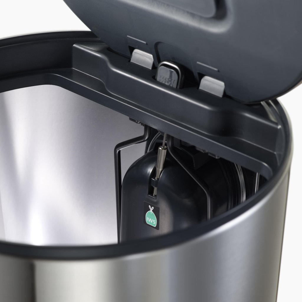 - O cesto é compatível com os insertos Joseph Joseph IW5, que se encaixam perfeitamente no recipiente interno e facilitam o manuseio do lixo.
