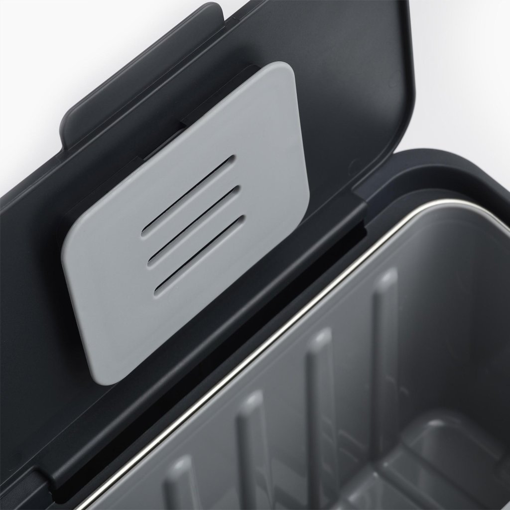 - Por baixo do recipiente interno, existe um espaço prático para guardar embalagens de sacos Joseph Joseph IW2 à medida, mantendo-os sempre à mão.