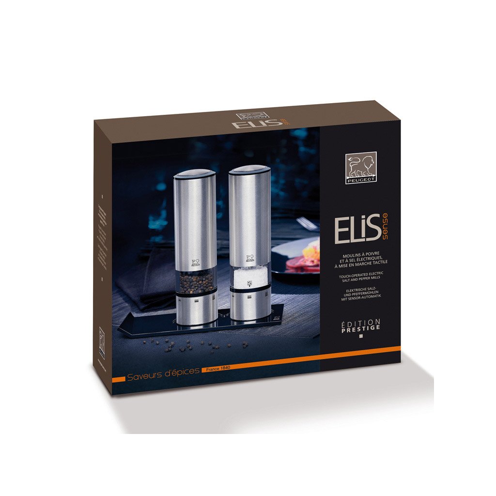Moinho elétrico de sal e pimenta ELIS SENSE DUO, conjunto de 2 unidades, com suporte, Peugeot