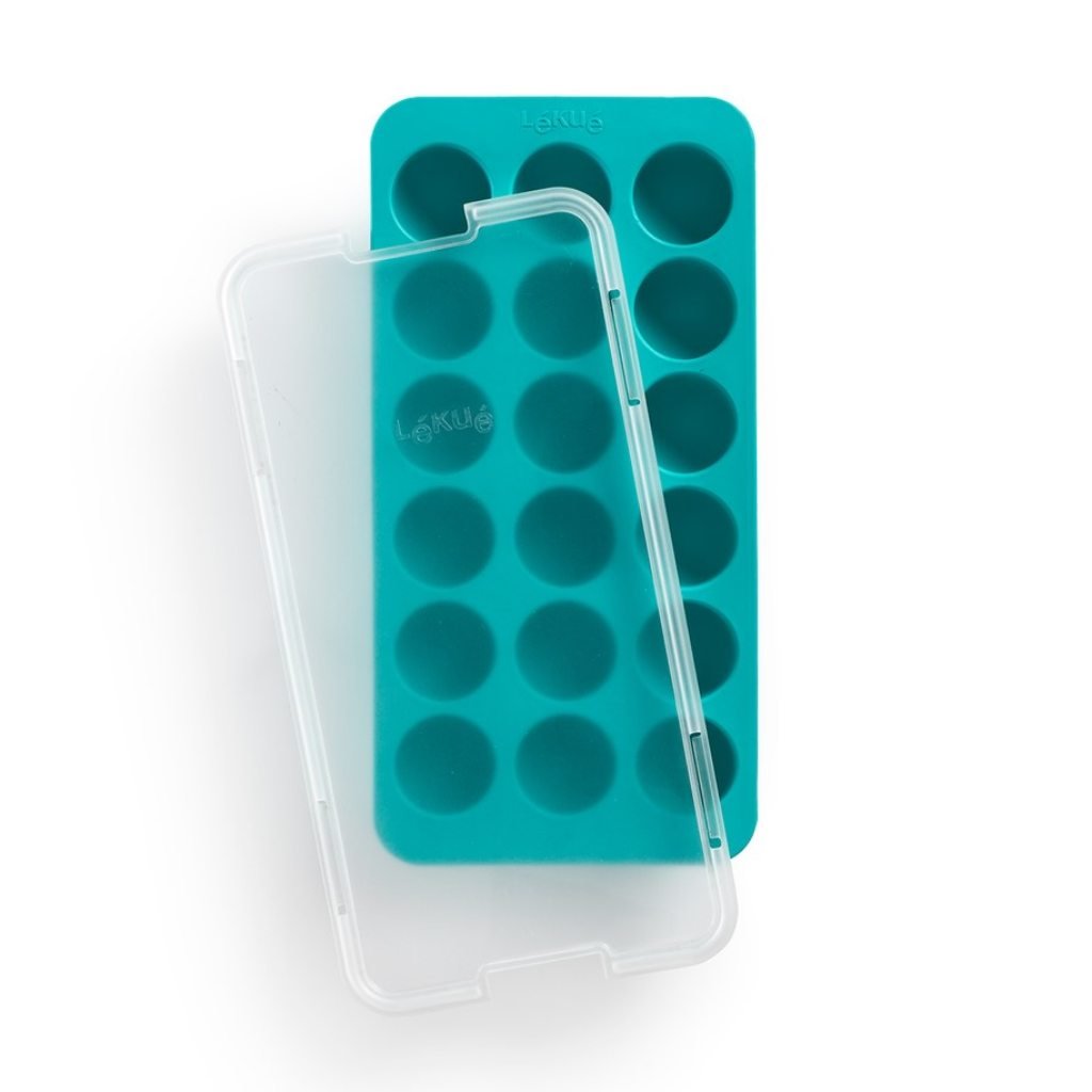 - molde de cubo de gelo Lékué com tampa permite fácil preparação de cubos de gelo redondos tradicionais para qualquer ocasião
