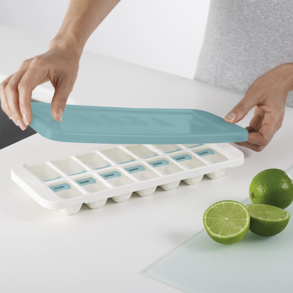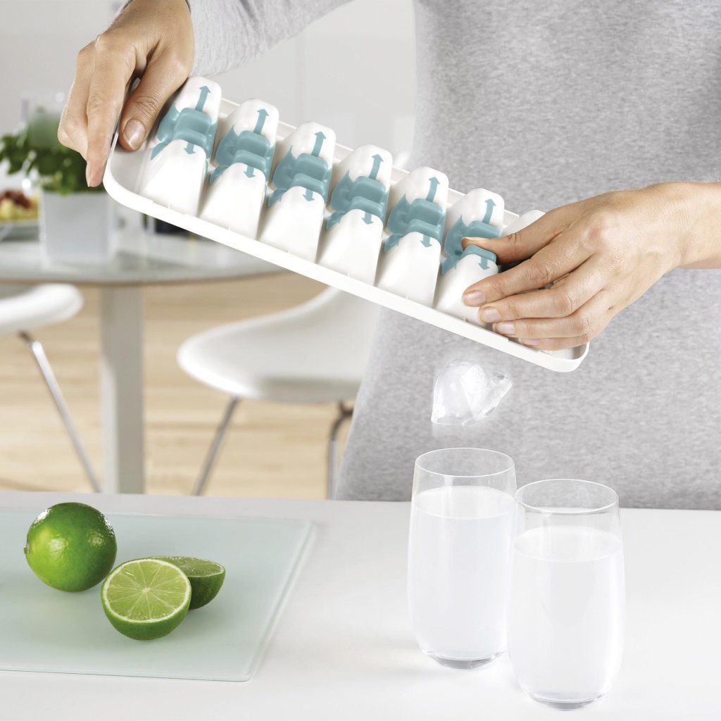 - Molde para cubos de gelo Joseph Joseph DUO utiliza um mecanismo patenteado para a liberação fácil e controlada de cubos individuais, sem a necessidade de despejá-los todos de uma só vez.