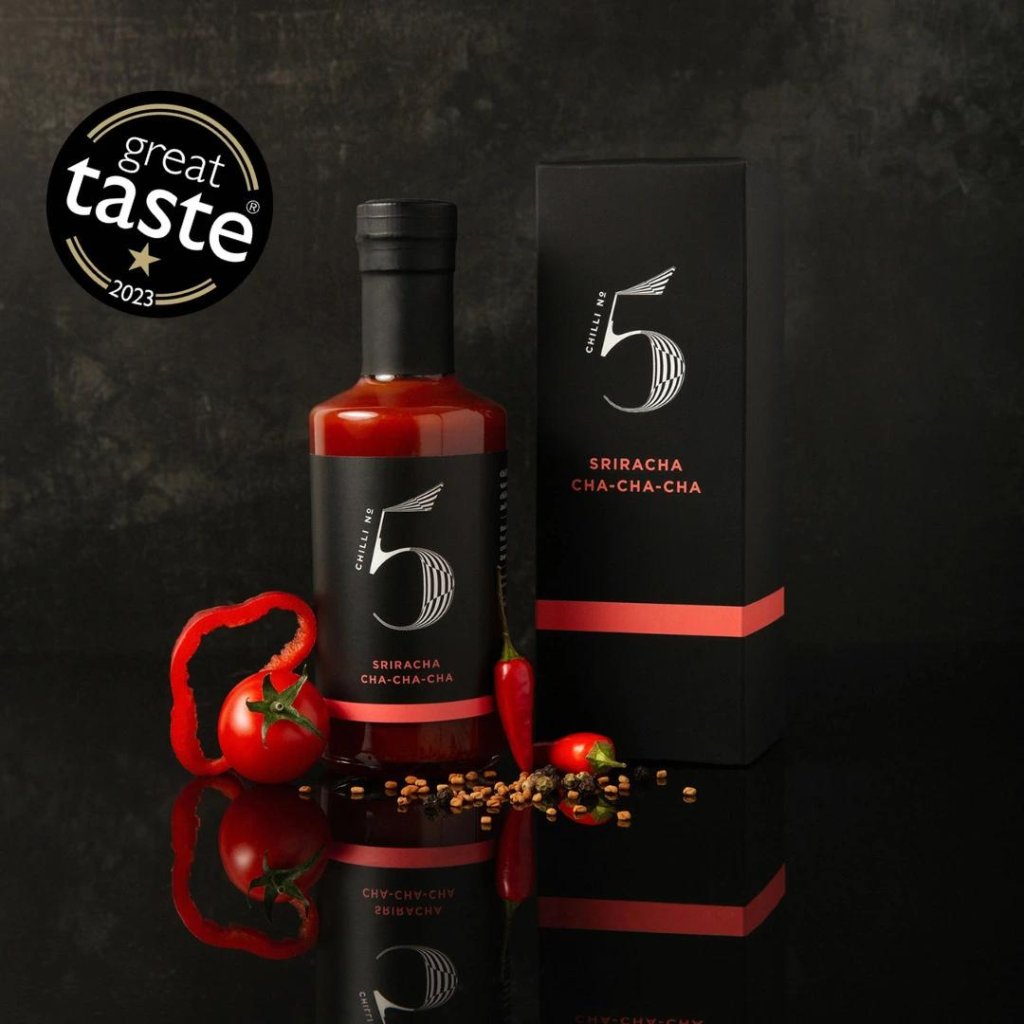- SRIRACHA CHA CHA CHA da Chilli No5 é um molho picante saudável, vegano e extremamente saboroso, numa elegante garrafa de vidro, que elevará qualquer refeição a um novo patamar.