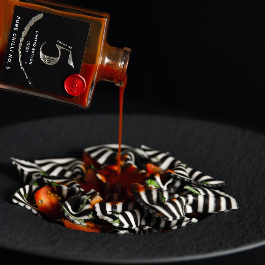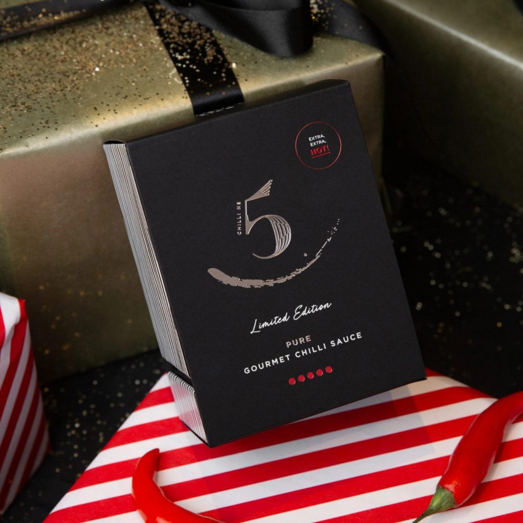 Este molho é para pessoas que já descobriram há muito tempo que um ligeiro picante é bom, mas a verdadeira diversão começa quando as papilas gustativas começam a perguntar-se se foi uma boa ideia. PURE CHILLI NO. 5 é intransigente, inconfundível e tão intenso que até mesmo sua embalagem serve como um pequeno aviso. A escolha perfeita para quem sabe que a vida é melhor com um pouco de fogo.