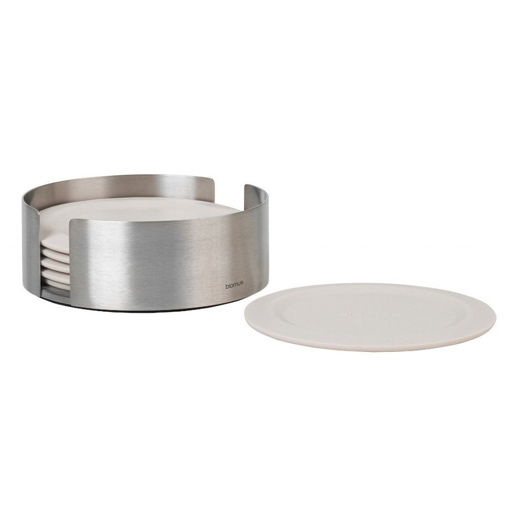 As elegantes bases para copos LARETO são feitas de silicone colorido com um suporte em aço inoxidável. As almofadas protegem a mesa de danos provocados pelo calor, líquidos e riscos. São guardados num suporte prático, equipado com uma proteção contra riscos de mesa. O design luxuoso e moderno completa o cenário da mesa na perfeição.