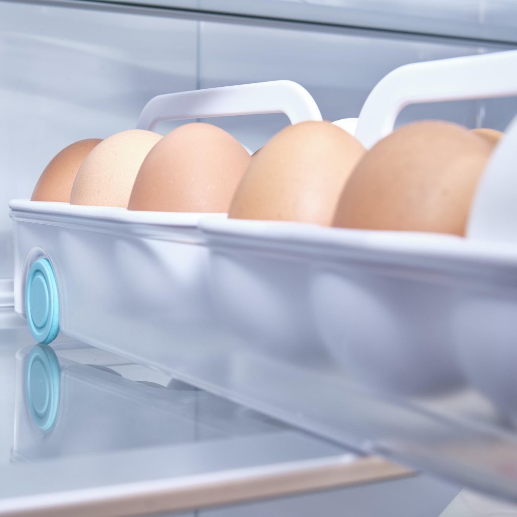 - O organizador oferece uma maneira simples de manter o frigorífico arrumado e ter os ovos sempre à mão.
