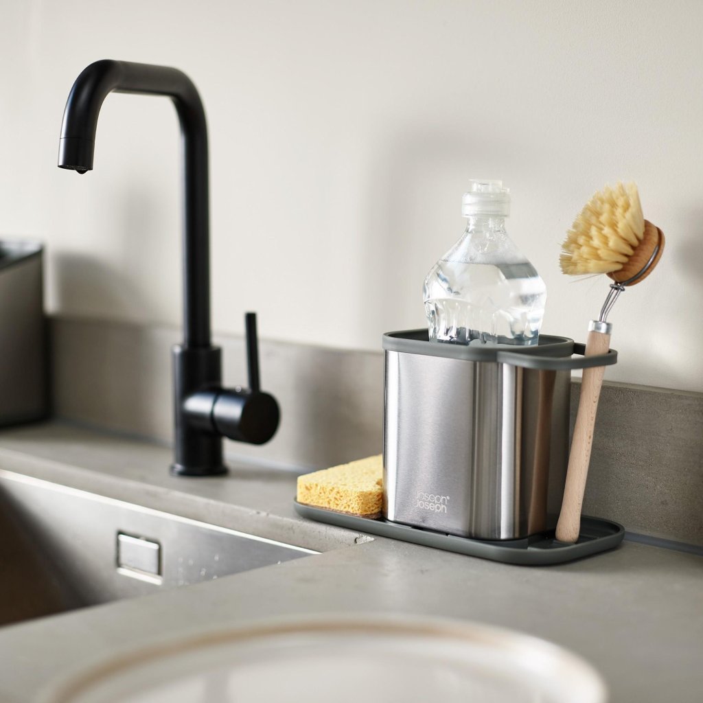- Organizador de pia Joseph Joseph DUO STEEL representa uma solução elegante e funcional para organizar o espaço ao redor da pia da cozinha.