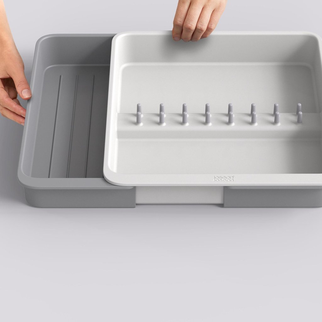 - O organizador de gaveta Joseph Joseph DRAWERSTORE ajuda a organizar de forma clara os utensílios de cozinha e acessórios na gaveta.