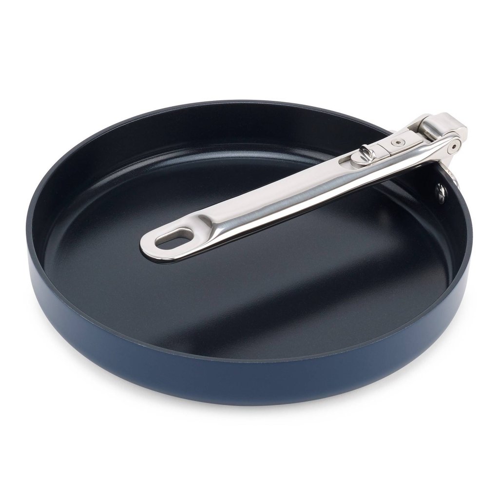 - Graças ao mecanismo dobrável, a frigideira pode ser facilmente empilhada com outras peças de utensílios, o que facilita significativamente a organização do espaço da cozinha.