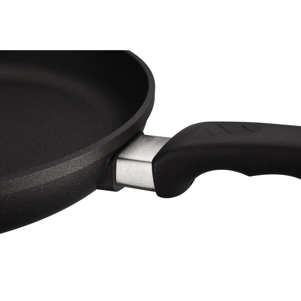 A pega ergonómica em material sintético, com punho antiderrapante para o polegar e orifício para pendurar, garante uma aderência confortável. A parte de suporte da pega é moldada no molde da panela. Formam uma unidade única, o que garante um ajuste seguro. Outra vantagem da série Titanium Nowo é a perfeita distribuição e acumulação de calor. As panelas podem ser utilizadas em todos os tipos de calor, incluindo indução, mesmo para cozer no forno, até 250 °C.
